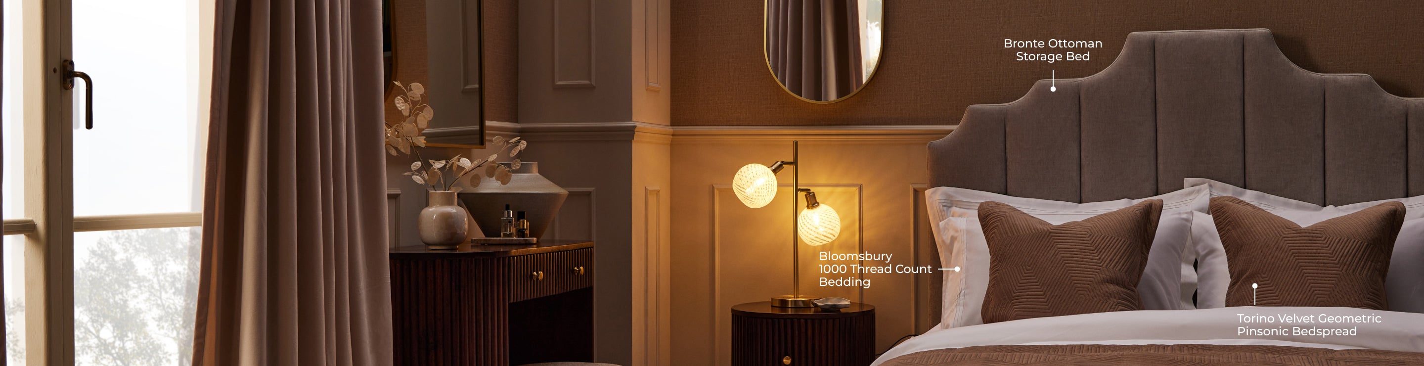 From soft-touch velvets to crisp cotton and beautifully grained wood, this collection is all about texture. A warm palette of neutrals, deep chocolate tones and subtle metallic accents brings a sense of calm, with just the right hint of glamour.