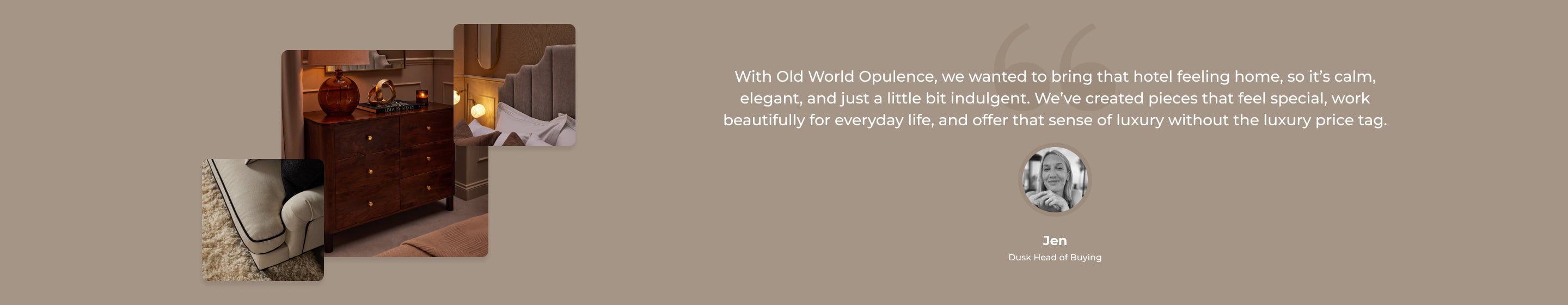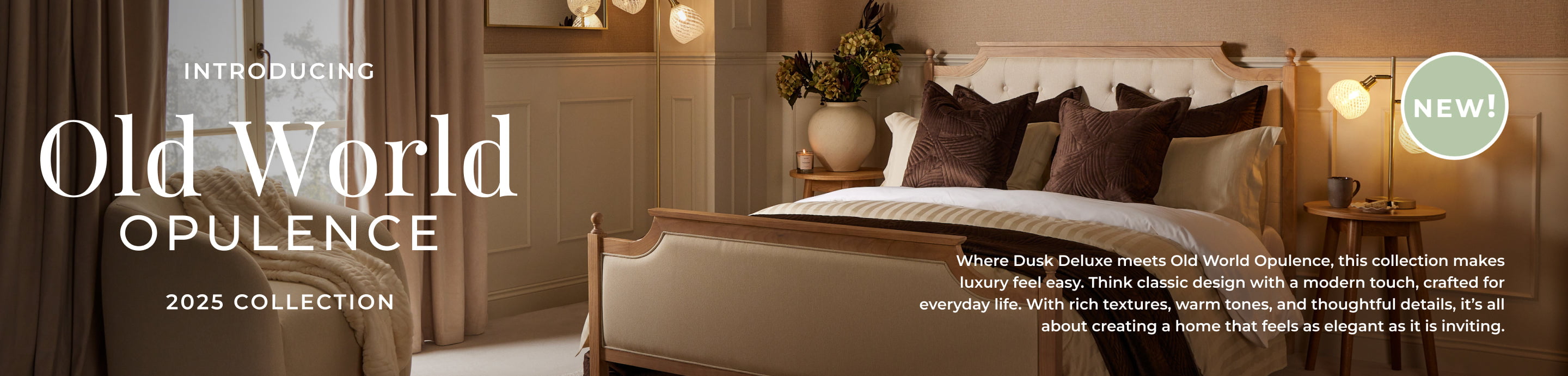 Have you ever walked into a hotel room and thought, I wish my home felt like this? Calm, considered, and a little bit fancy, but still somewhere you can kick off your shoes and get comfy. That’s the idea behind Old World Opulence, our latest collection that’s all about everyday luxury, made easy.