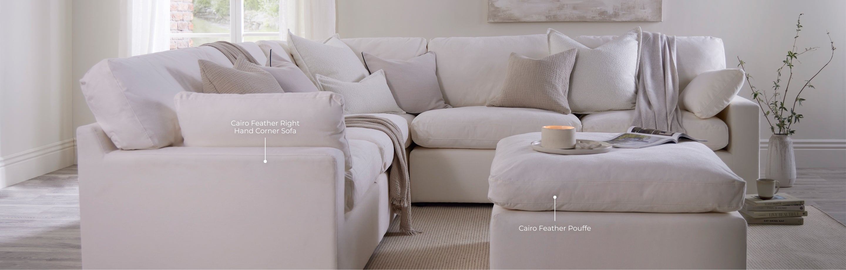 Unwind in ultimate comfort with our first feather-filled Cairo sofa, designed to make every moment at home feel like a retreat.