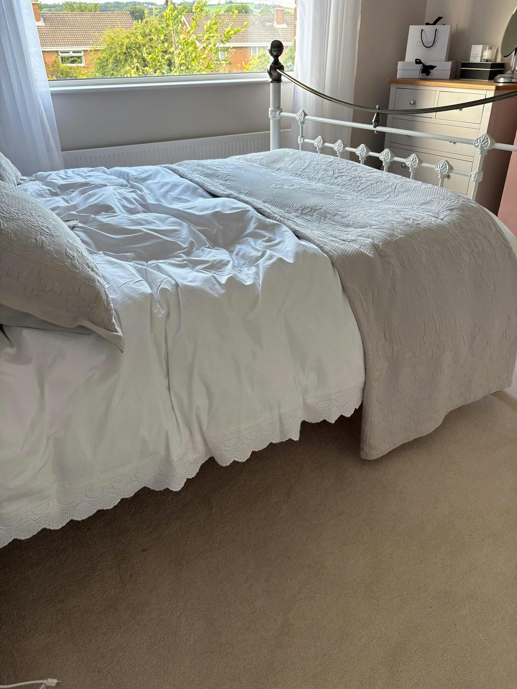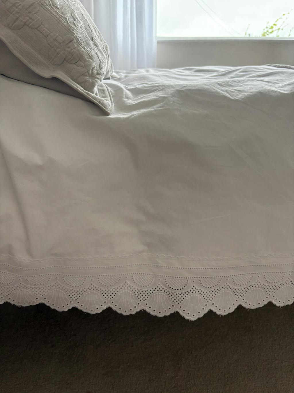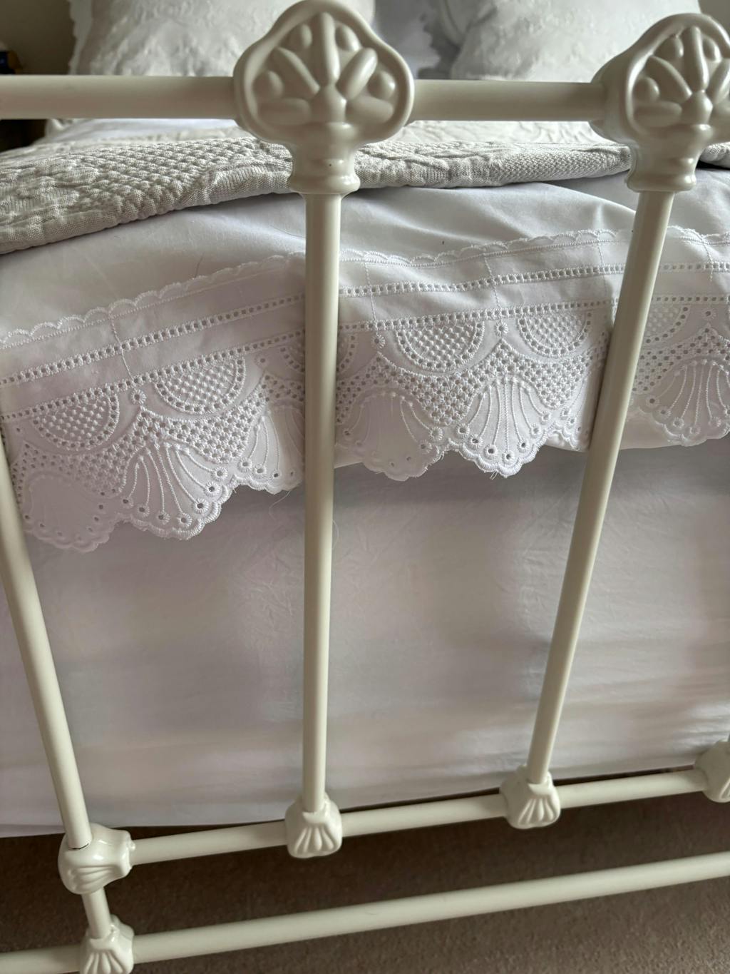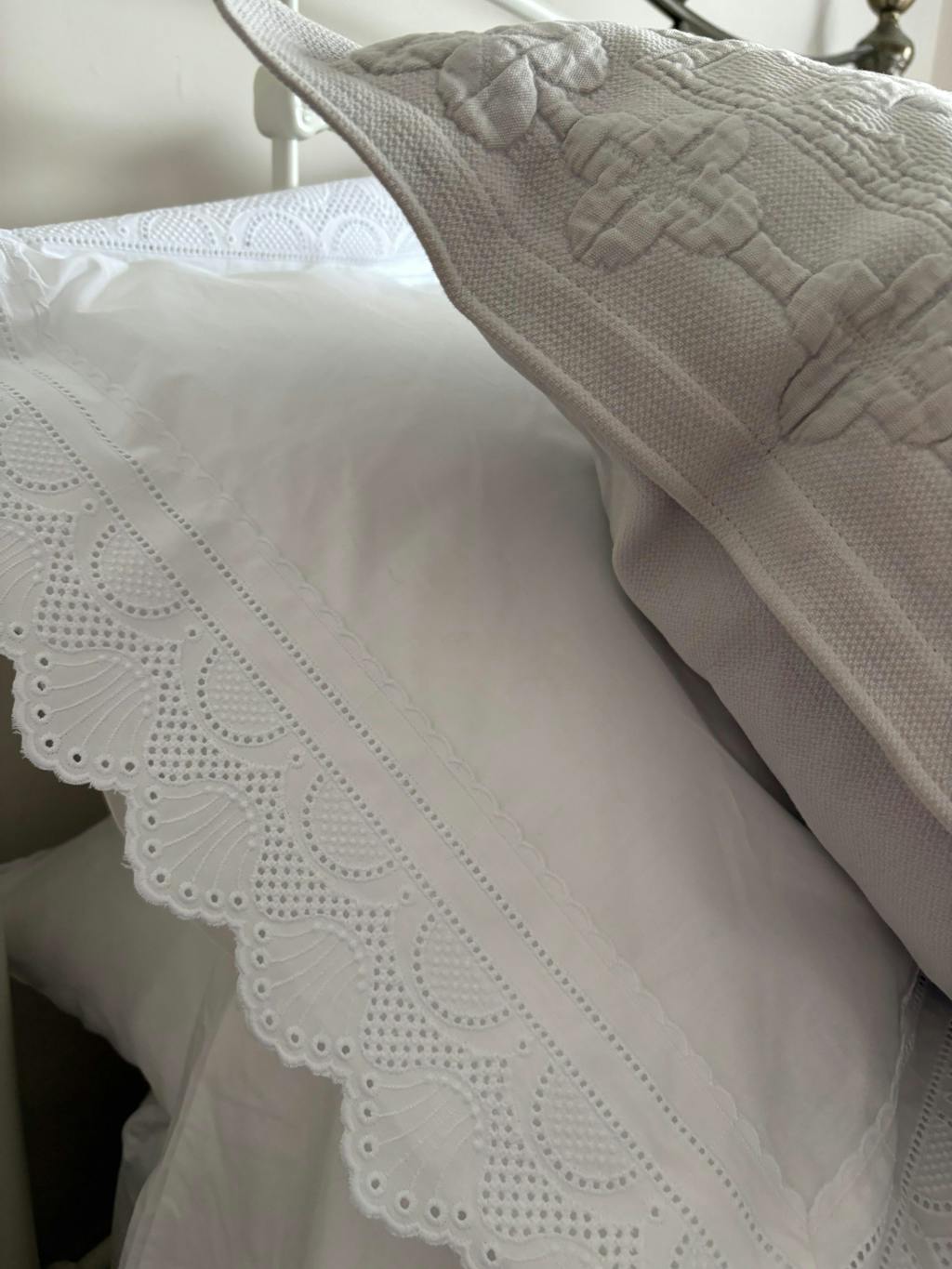 Designed to match the Alice Lace Border duvet cover, these 100% cotton percale pillowcases offer a crisp, breathable feel with a delicate lace border for added sophistication. Available in Standard, Super King, and square sizes (50x50cm and 65x65cm) to complete your dreamy, romantic bedding set.