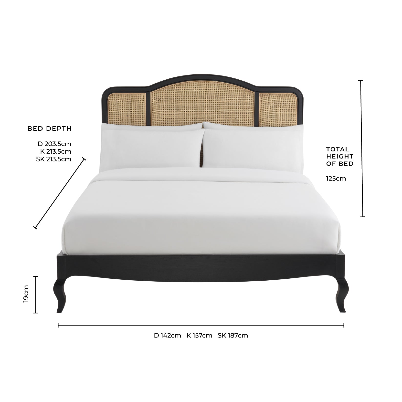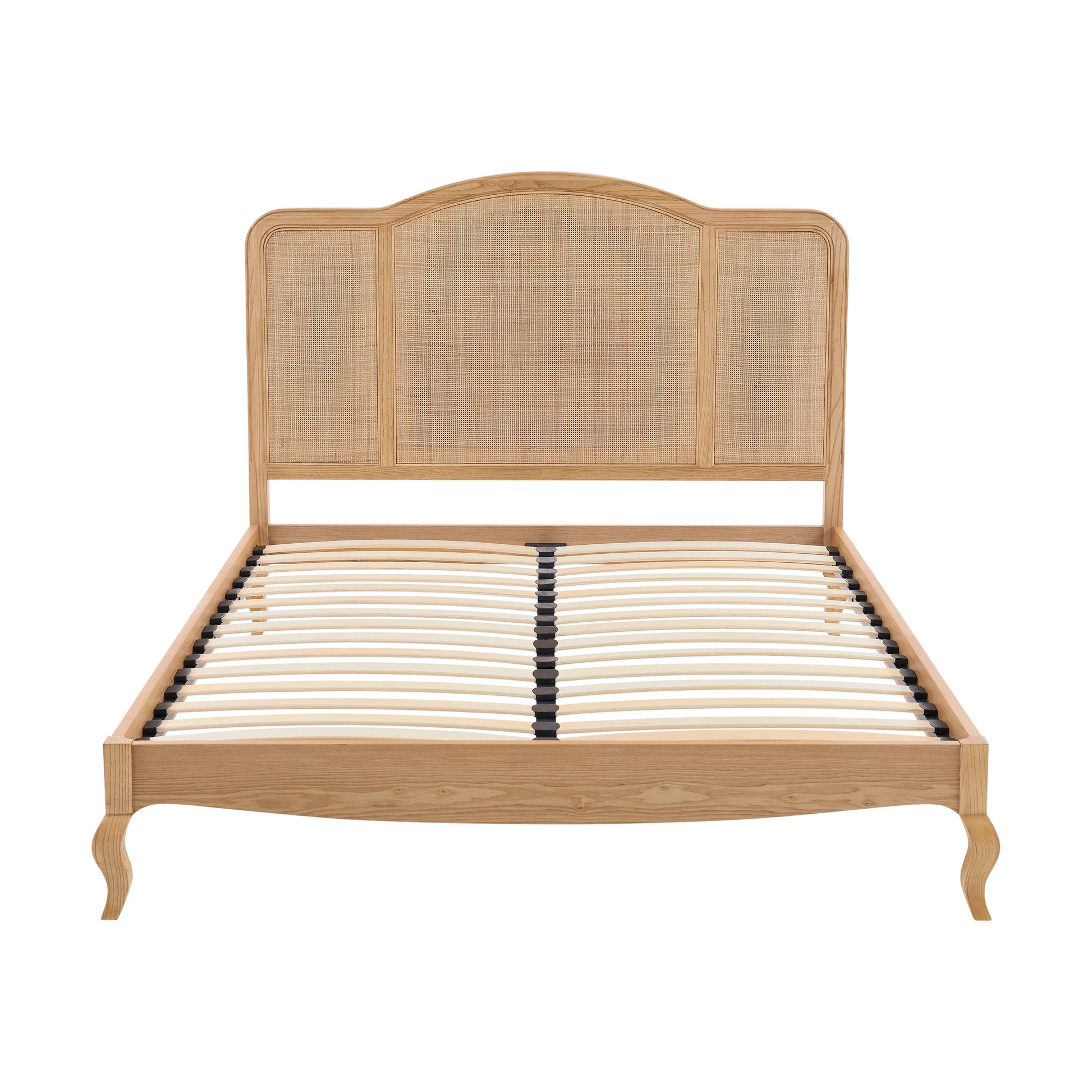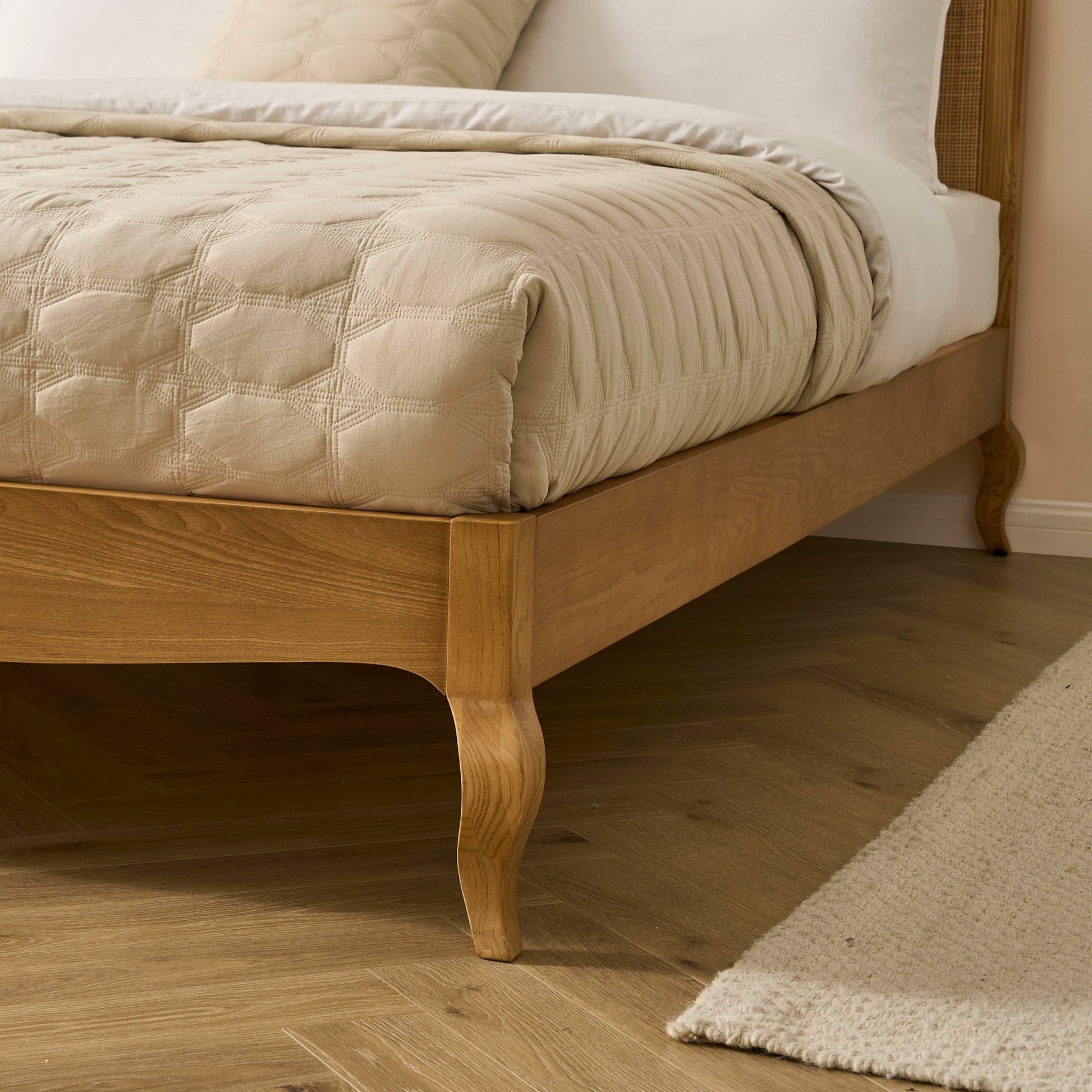 The Annecy bed combines chic style and exceptional comfort, making it a standout centre piece for your bedroom. The bed is crafted from natural rattan and features a classic natural wooden frame with a subtle curved design for a smooth and elegant appearance. The natural regency-style legs add a sophisticated finishing touch. In addition to its striking design, the Annecy bed has a wooden sprung slatted base that provides unparalleled comfort for the ultimate night's sleep.