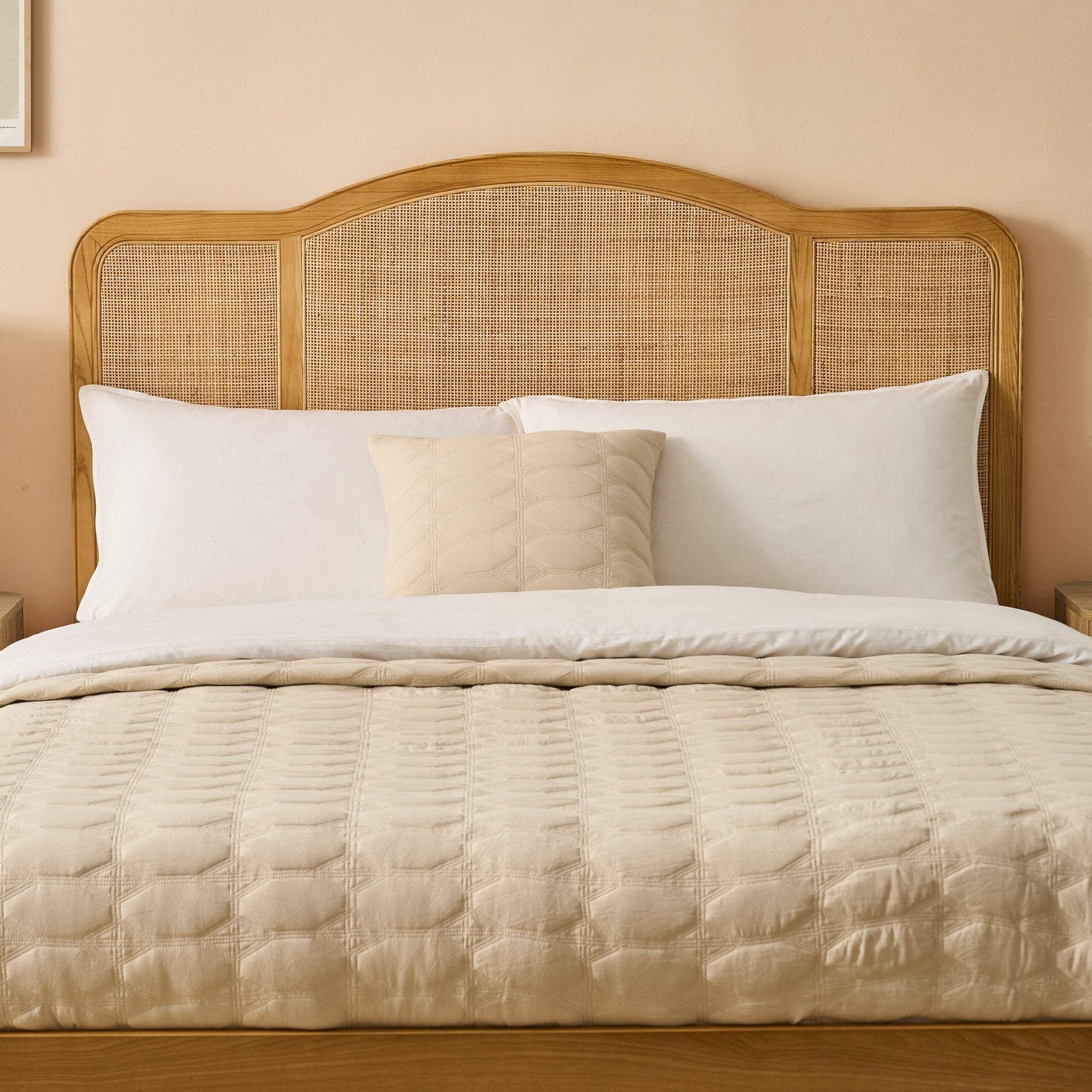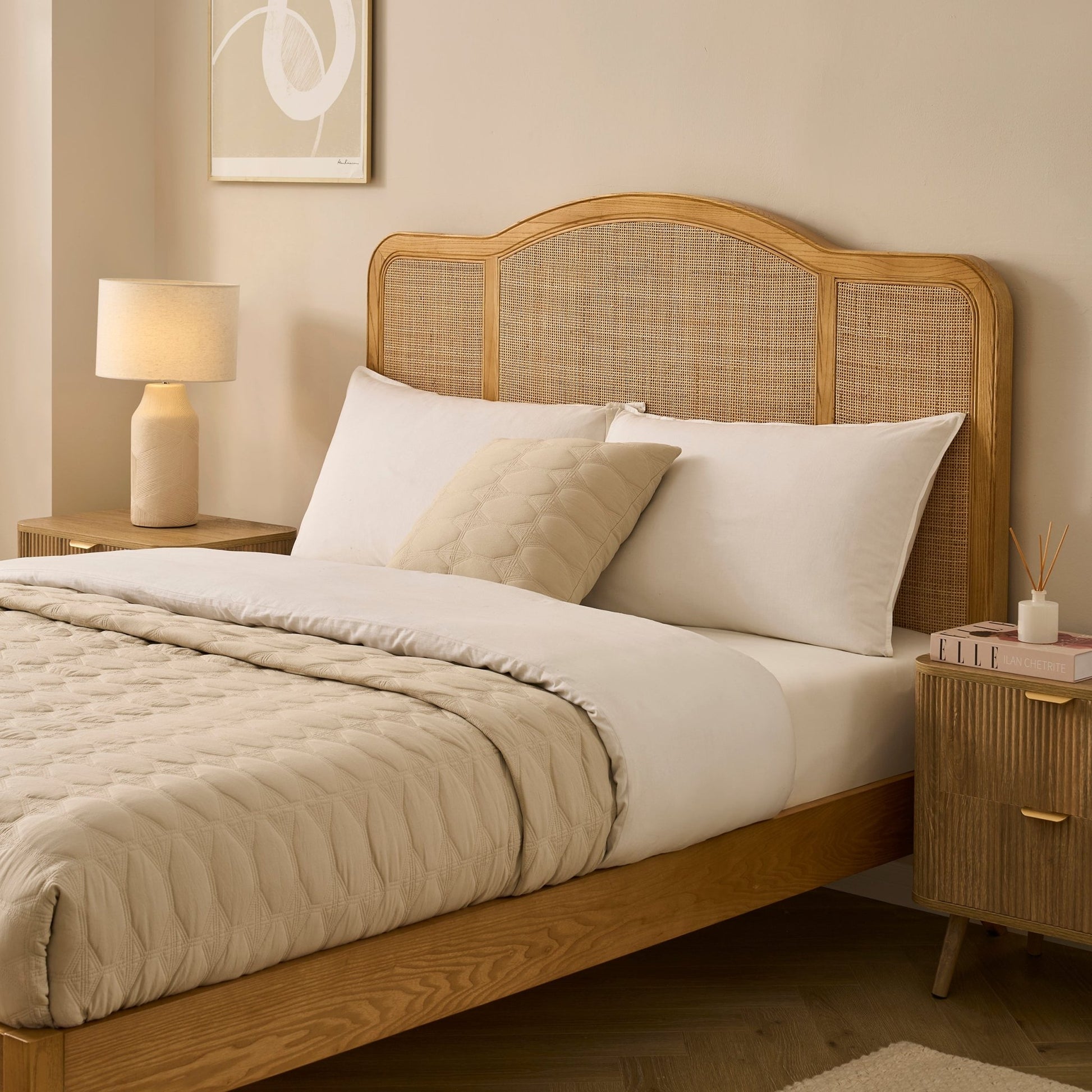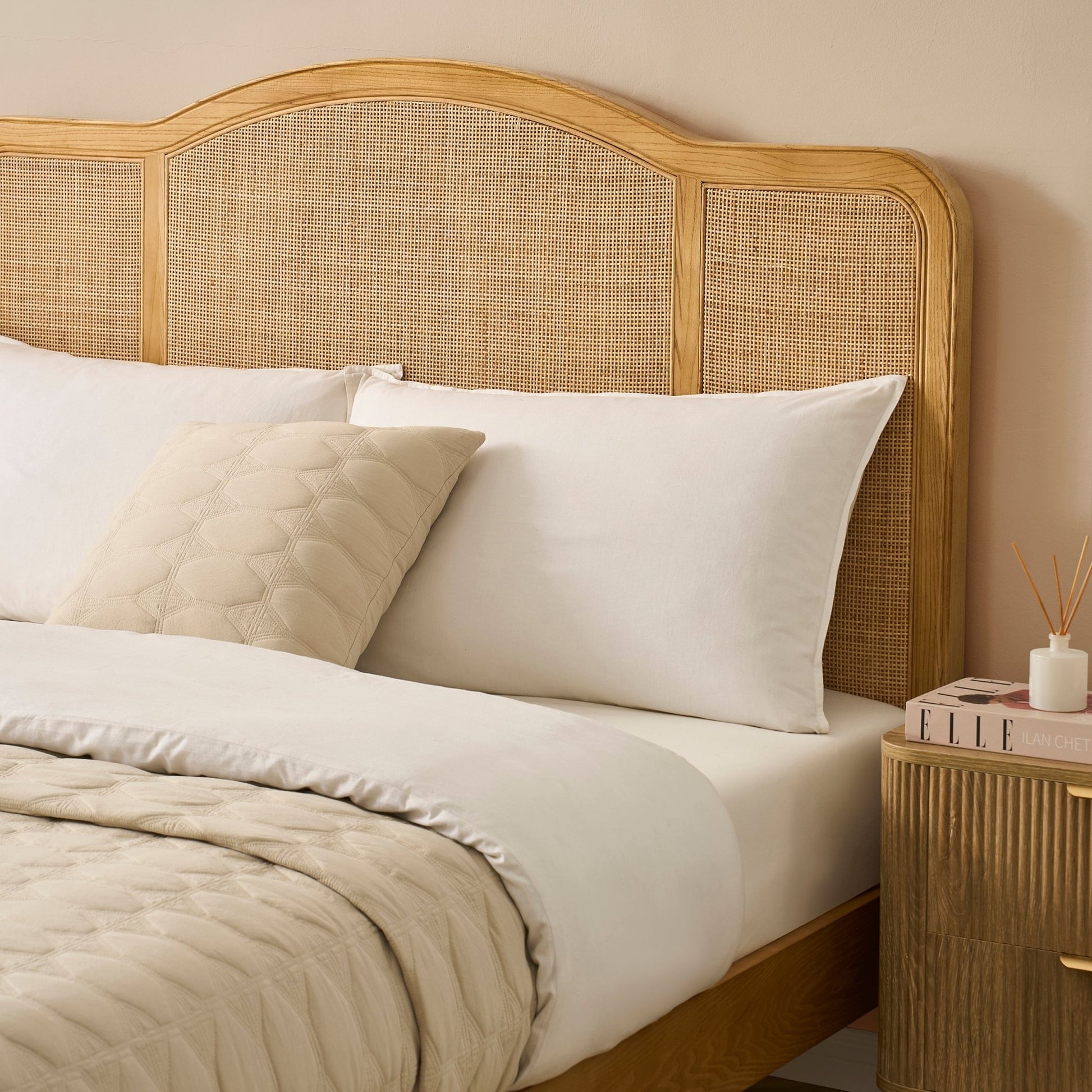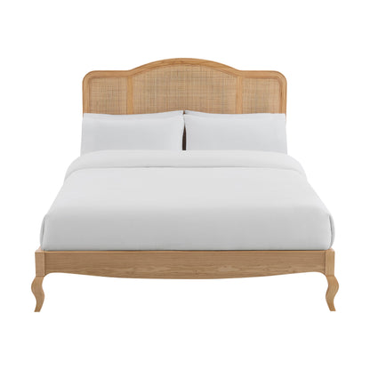 Elevate your bedroom decor with the Annecy Rattan Bed, featuring a distinctive natural frame.