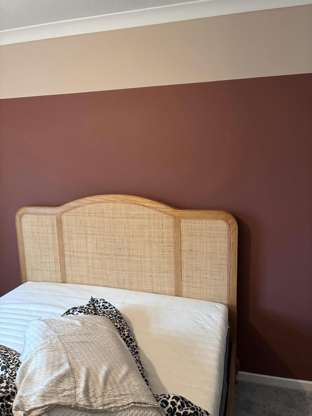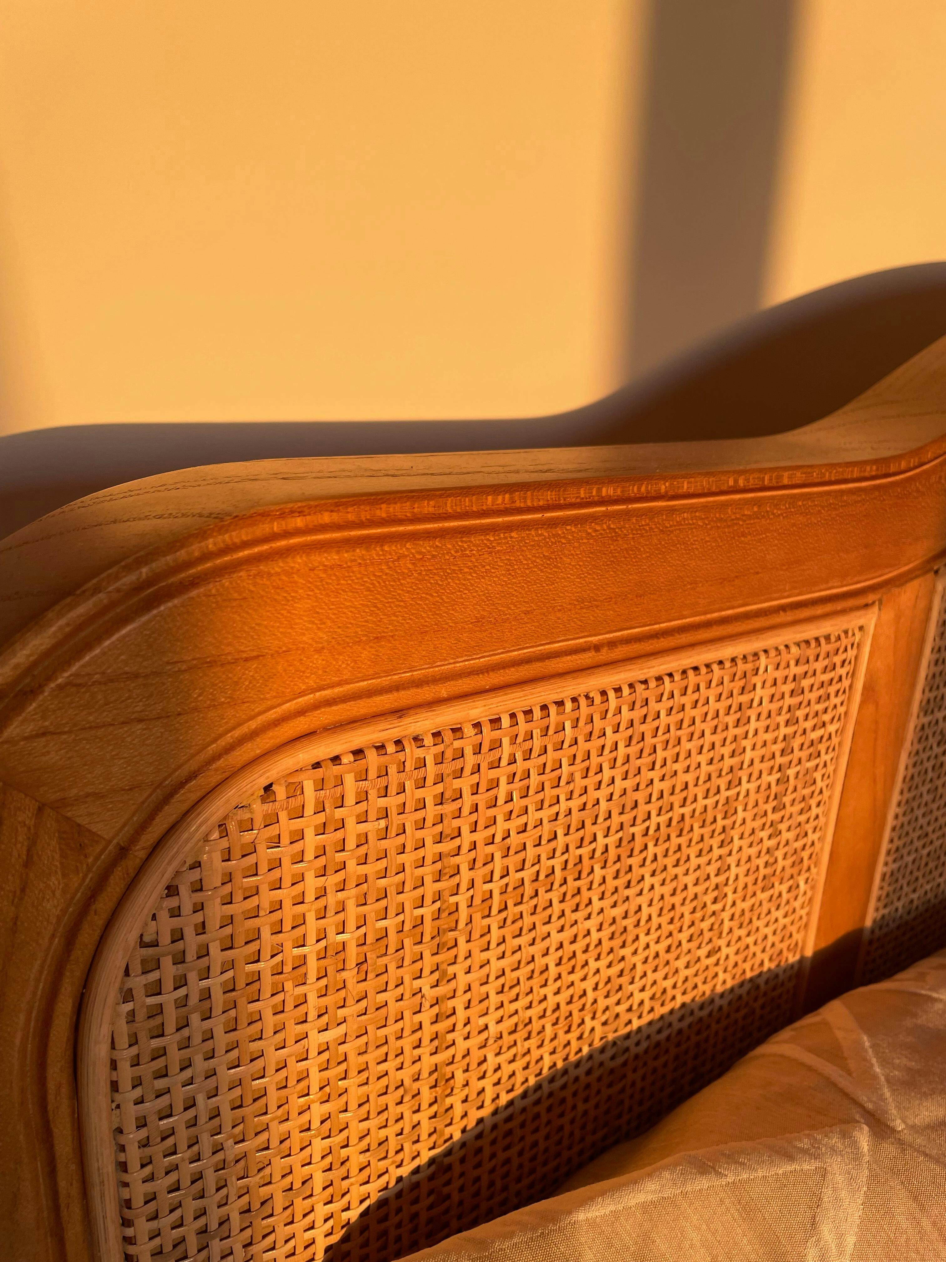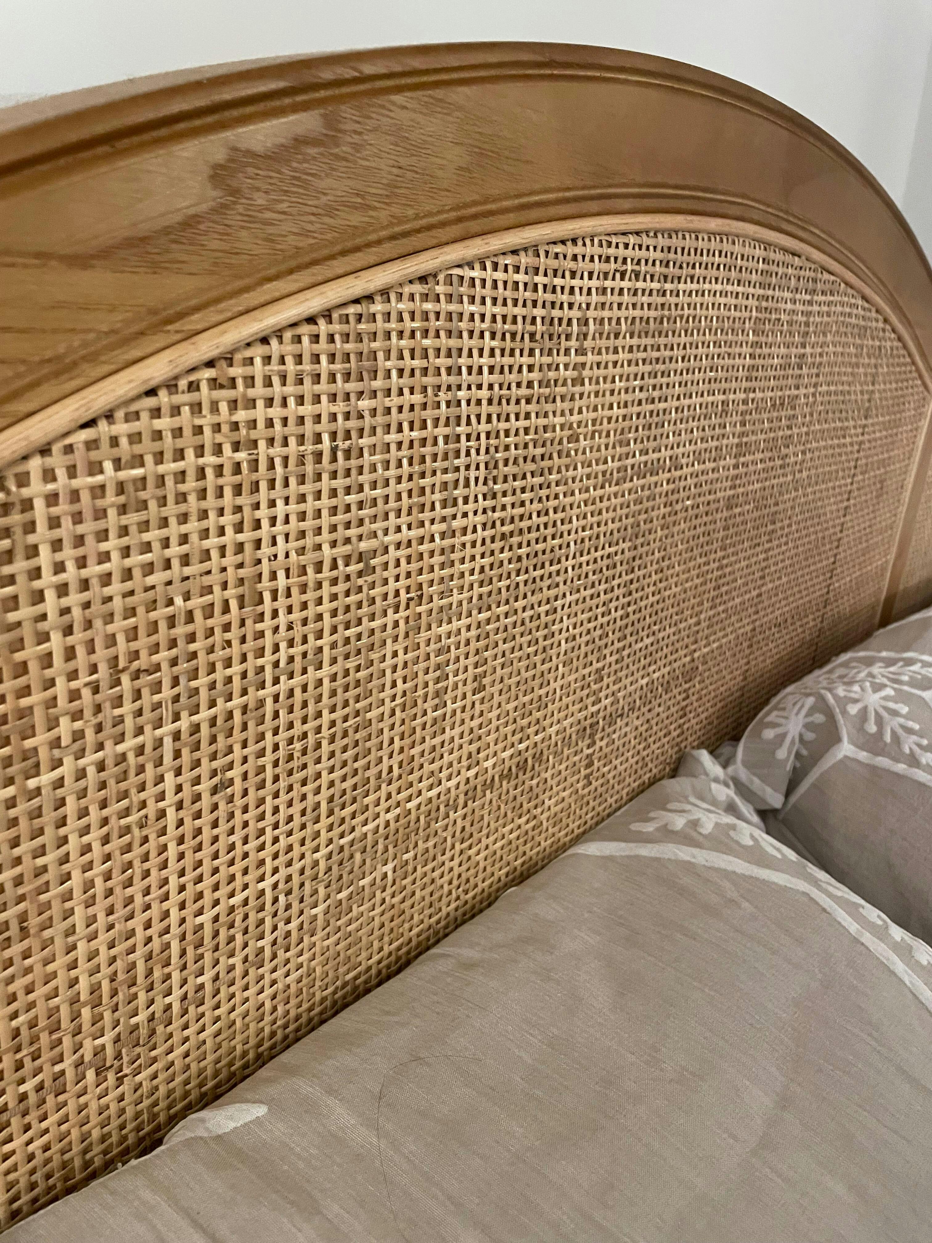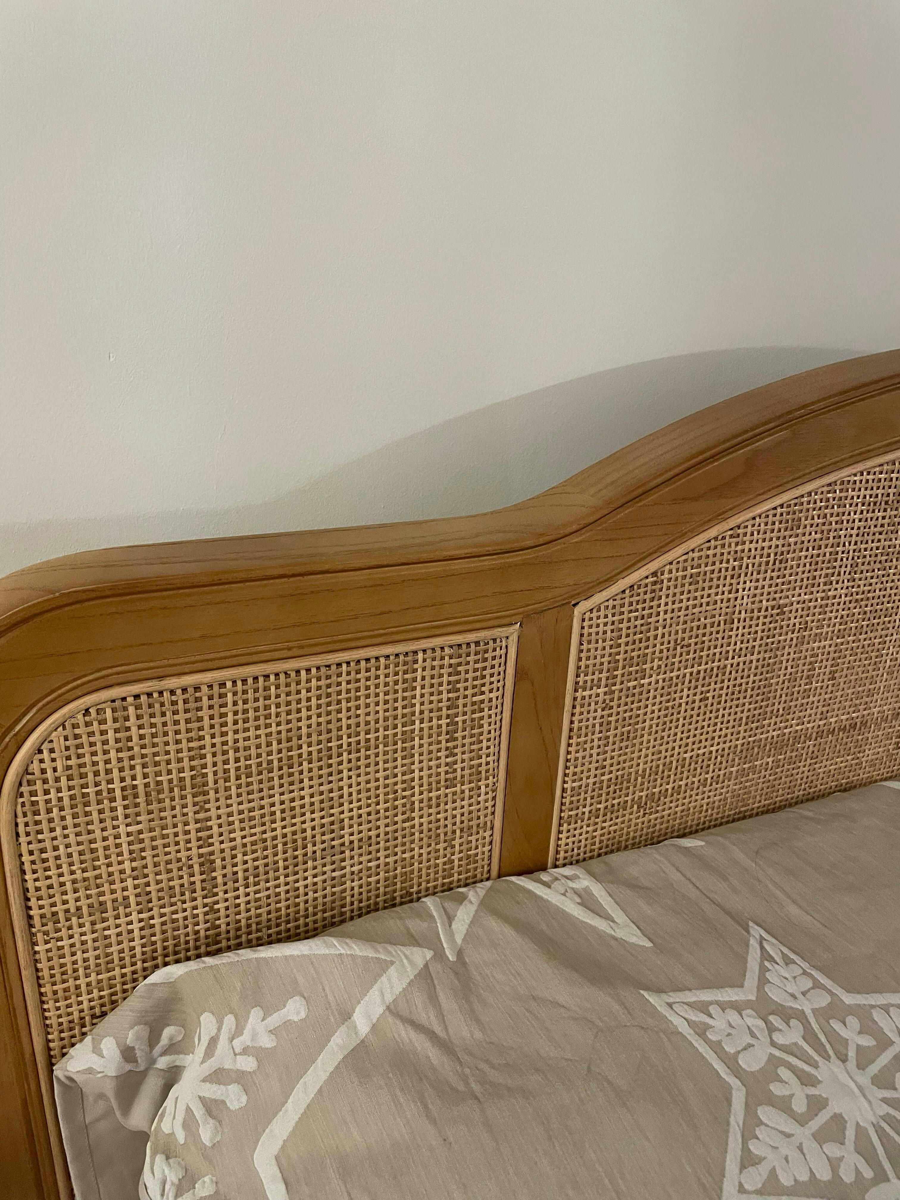 Elevate your bedroom decor with the Annecy Rattan Bed, featuring a distinctive natural frame.