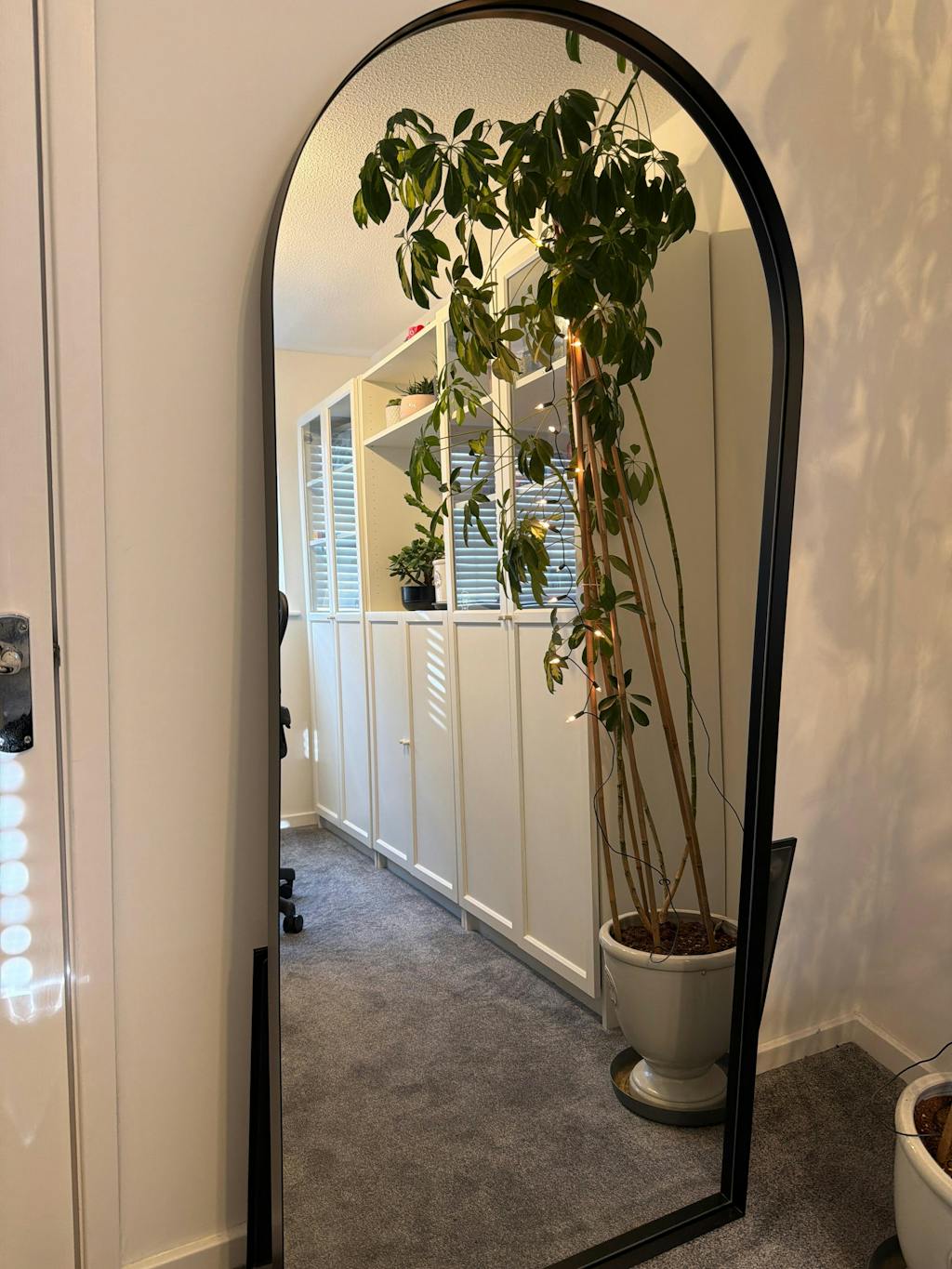 In a sleek black or gold metal frame, this tall mirror makes a statement wherever it goes. The arch adds grace and height, while the full reflection means you’ll never miss a detail.