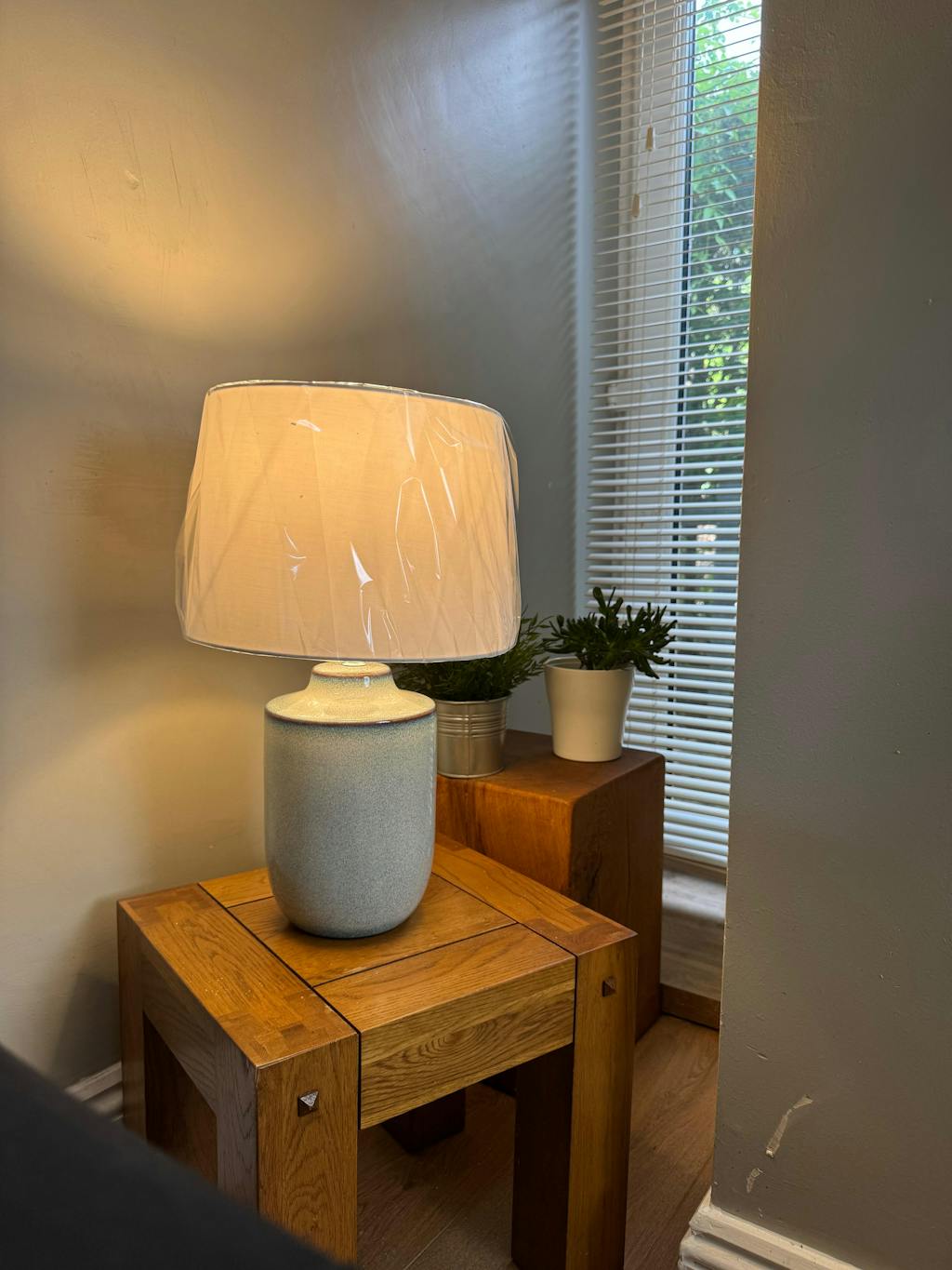 Beautifully designed, the Atlas ceramic table lamp will bring elegant warmth wherever you style it. Its sleek ceramic base is in blue and natural tones, and the classic white shade is made with premium fabric. Whether placed in the lounge on a sideboard or in the bedroom on your chest of drawers, this is stunning lighting for your living space.