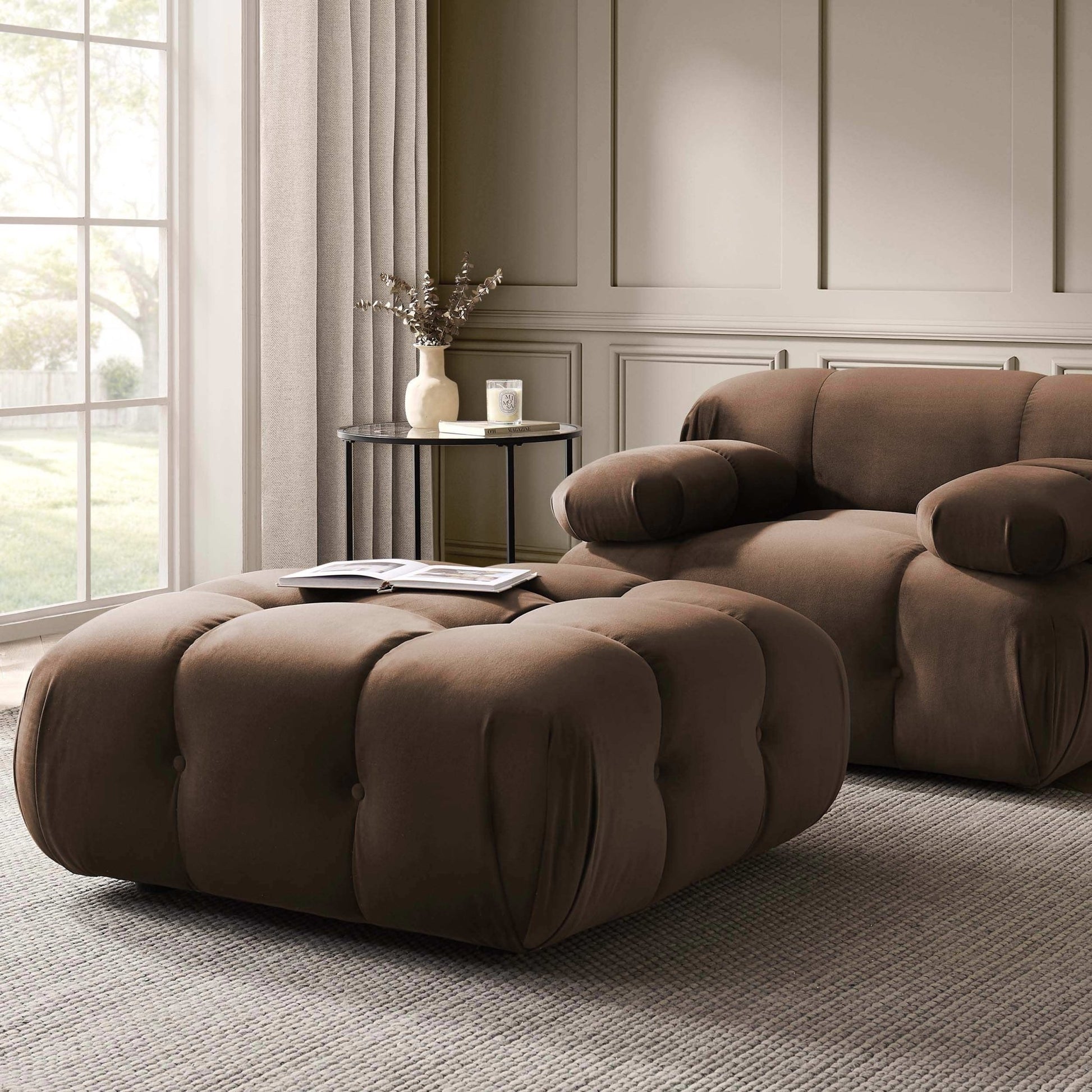 The Bondi Pouffe pairs its bubble-inspired design with luxurious comfort, making it the perfect companion for your Bondi seating or as a standalone feature. Available in cappuccino for a rich, cosy tone or ivory for a clean and contemporary feel, it works beautifully as extra seating, a footrest, or even a striking centrepiece.