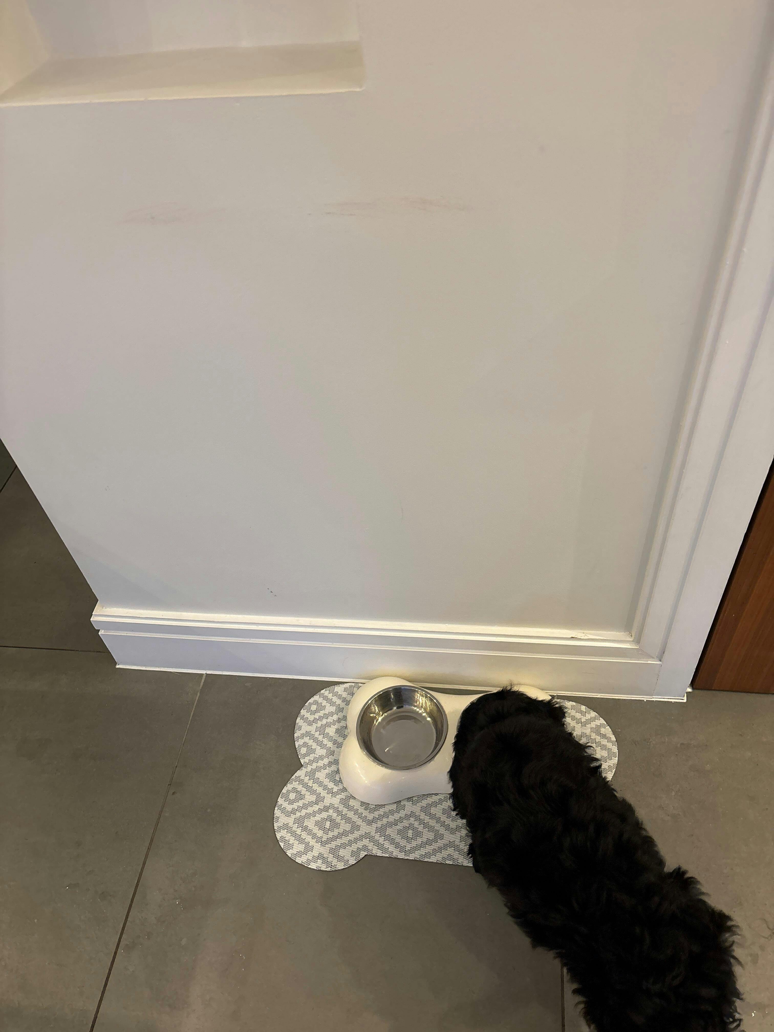 Upgrade your dog's mealtime with this stylish bone-shaped double food bowl.