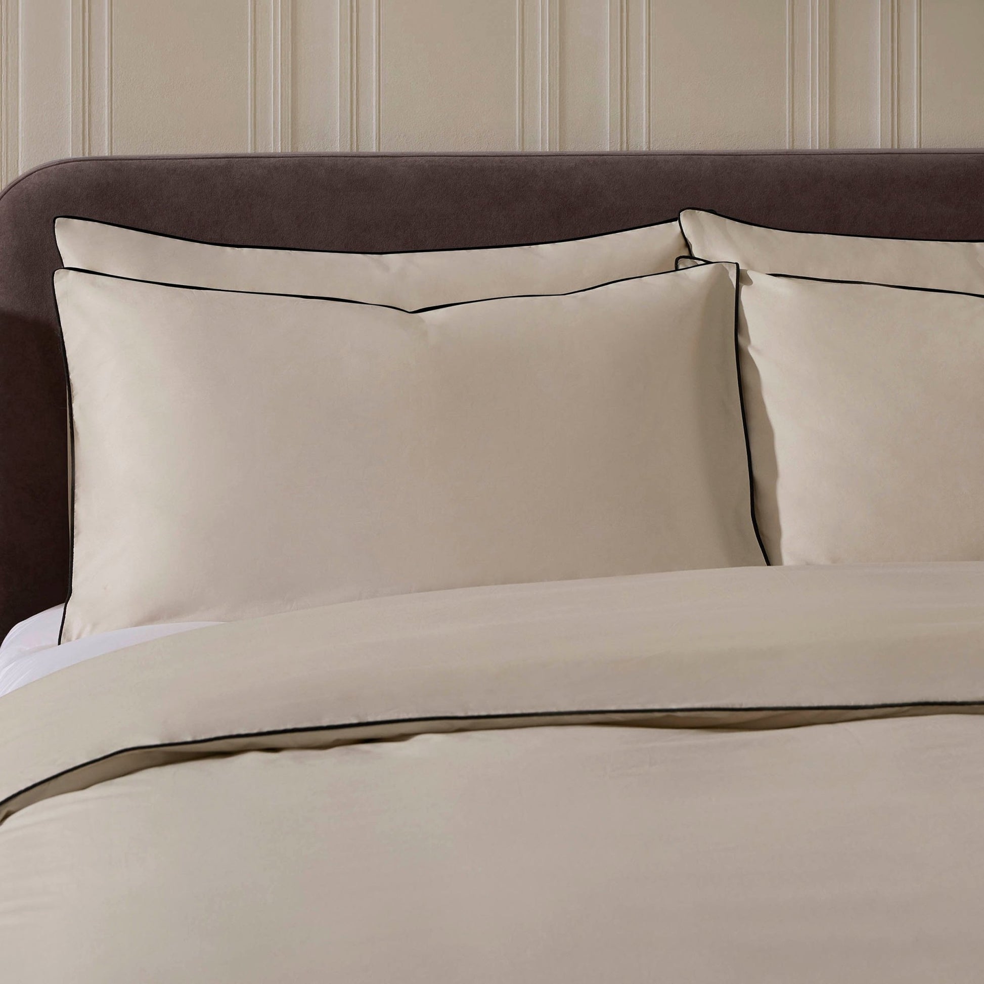 Crafted in a 200 thread count 100% cotton percale, this stunning collection comes finished with an elegant black piping edge. A beautifully simple yet stylish duvet cover, perfect for adding modern style to the bedroom.