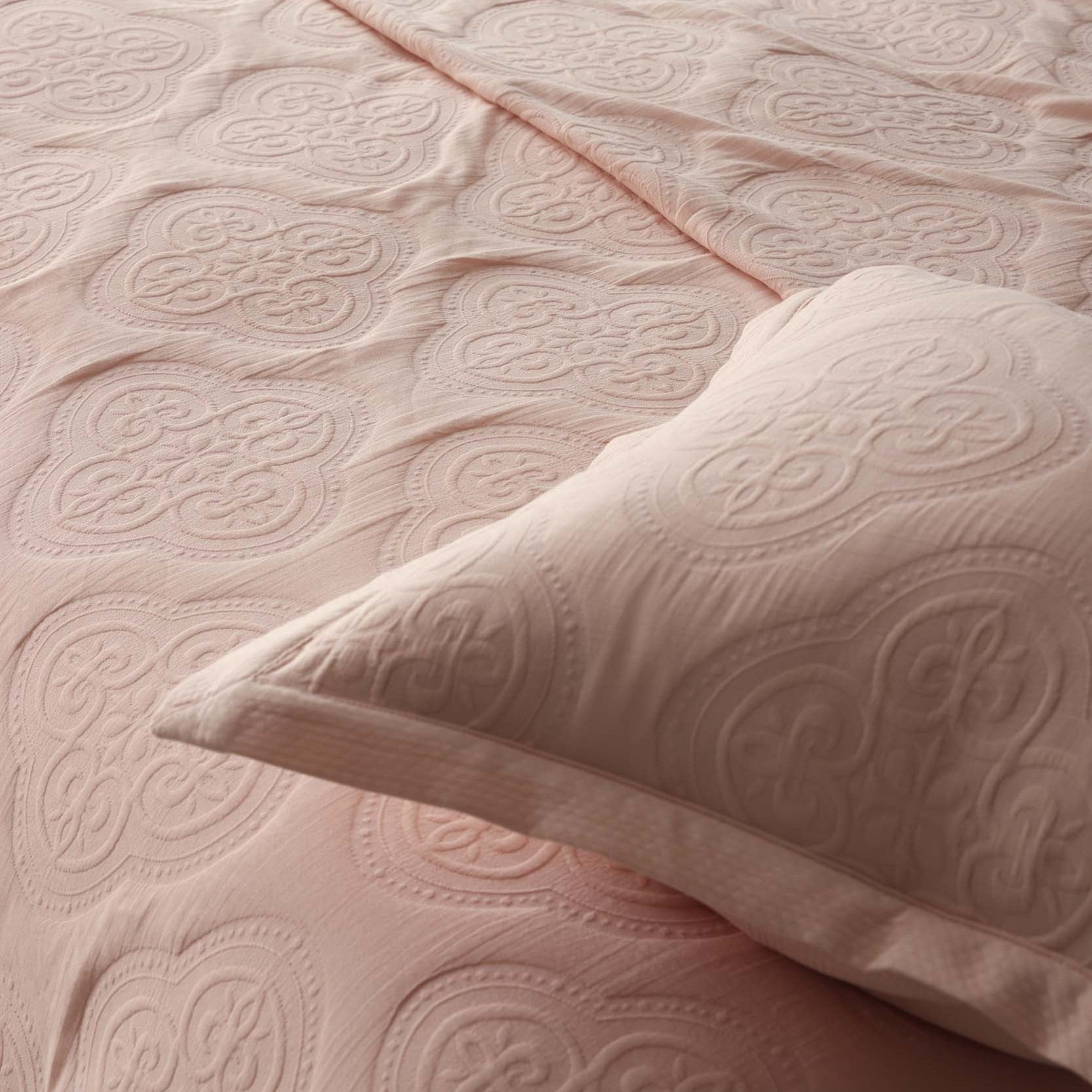 Designed to bring a subtle yet sophisticated look to your space, this cotton-blend cushion cover features an elegant matelassé pattern that adds depth and texture. The light pink hue complements any décor, making it a versatile addition to your bed or sofa. Use it to layer texture across your bed or to soften a favourite chair.