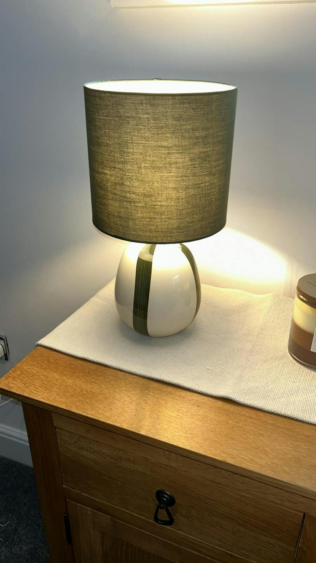 The contrasting colours and simple design create a striking visual impact, while the warm, ambient light adds a cosy touch. Perfect for bedside tables, living rooms, or home offices, the Cassie lamp is a stylish and functional addition to any home.