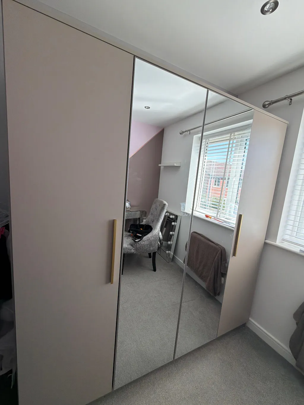 With three hinged doors and a full‑length mirror, the Darcey Wardrobe combines style with smart storage. Inside, you’ll find lots of hanging space for clothes, along with room for shoes and accessories, keeping your bedroom calm and clutter‑free.