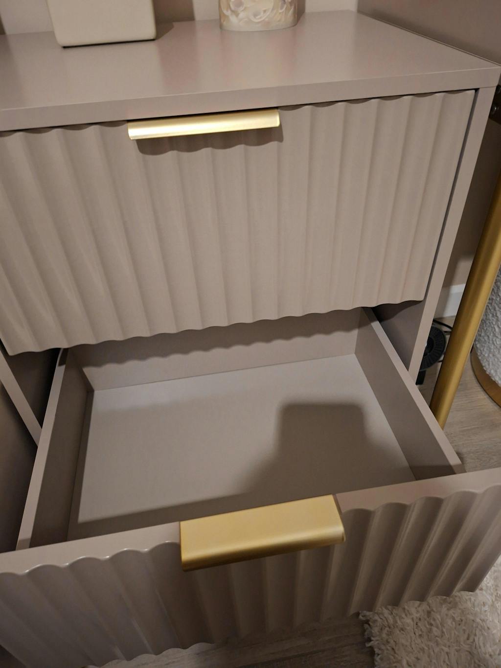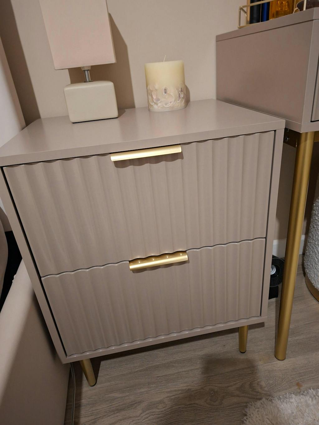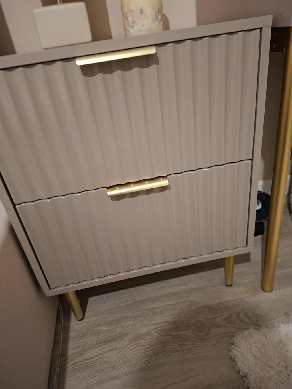 Perfect for smaller spaces or creating layered looks, the two-piece set offers flexibility - use them together as a statement centrepiece or separately when you need extra surface space. The gold accents bring a subtle touch of luxury, making them both stylish and functional.