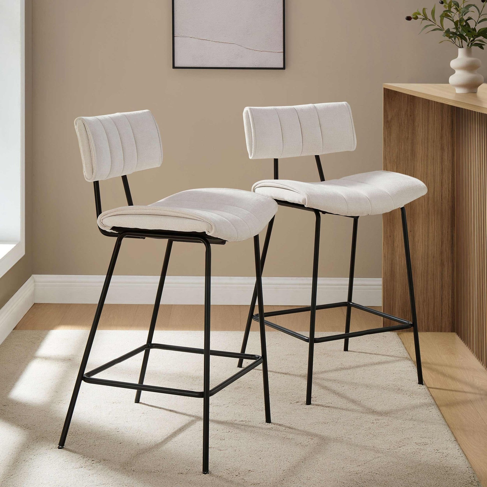 Sold as a set of two, these bar stools feature the same distinctive curves and stitched detailing as our dining chairs, with the added bonus of a comfy footrest and extra height. The curved back offers just the right amount of support, while the padded seat keeps things cosy. Choose from different fabric finishes to suit your space.