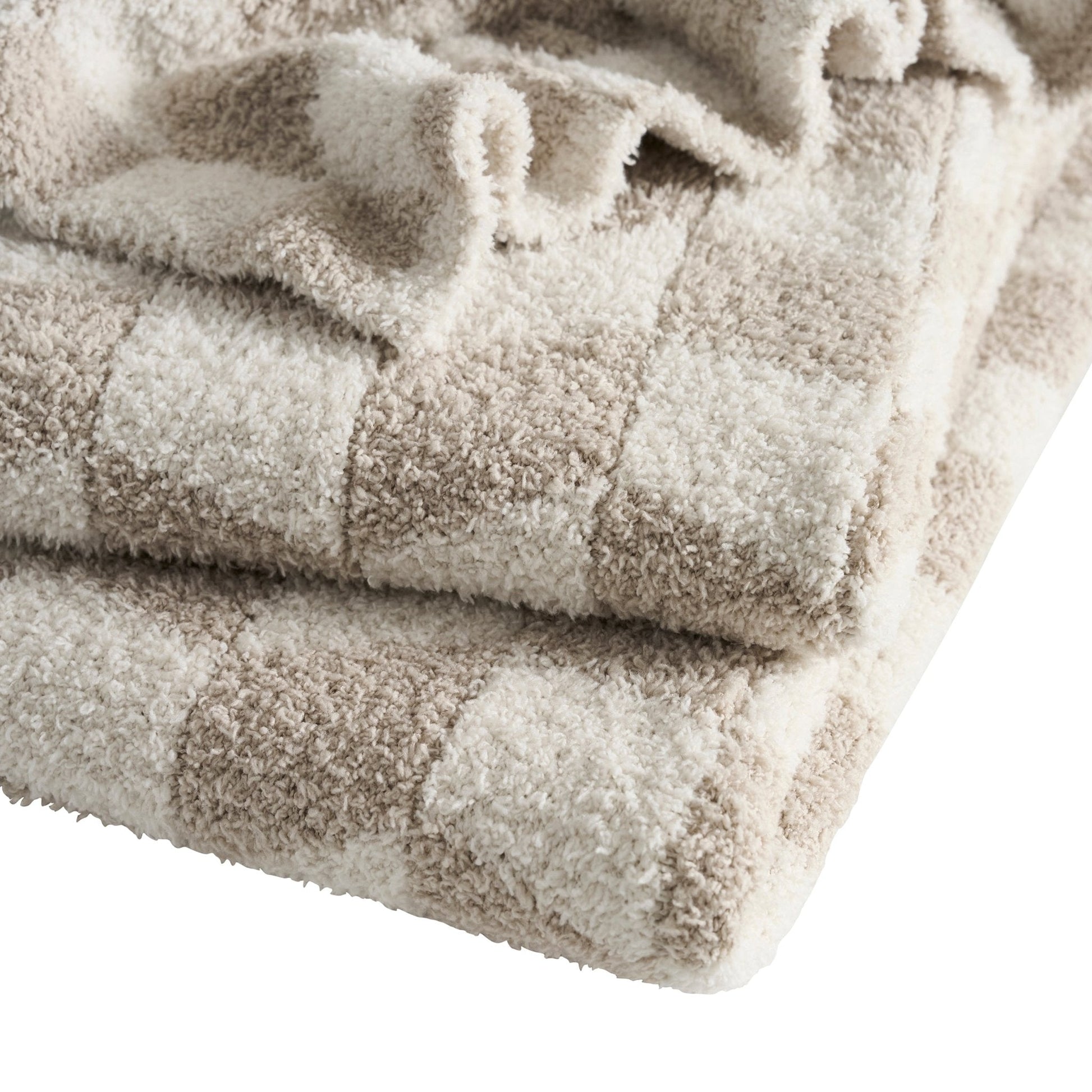 Wrap yourself in cosy style with our Fluffy Knit Checkerboard Throw.