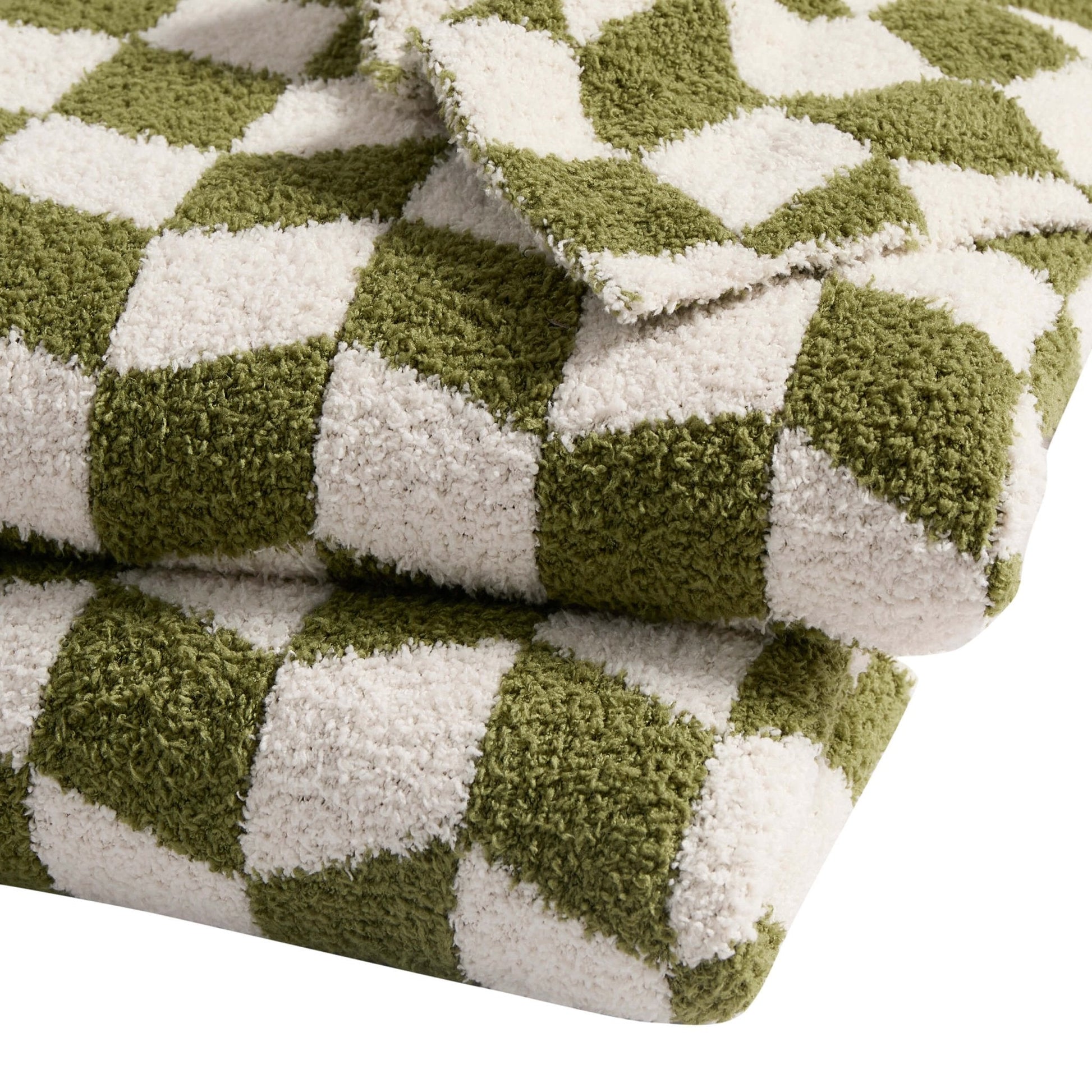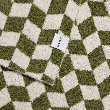 Fluffy Knit Checkerboard Sofa Throw - Olive - DUSK