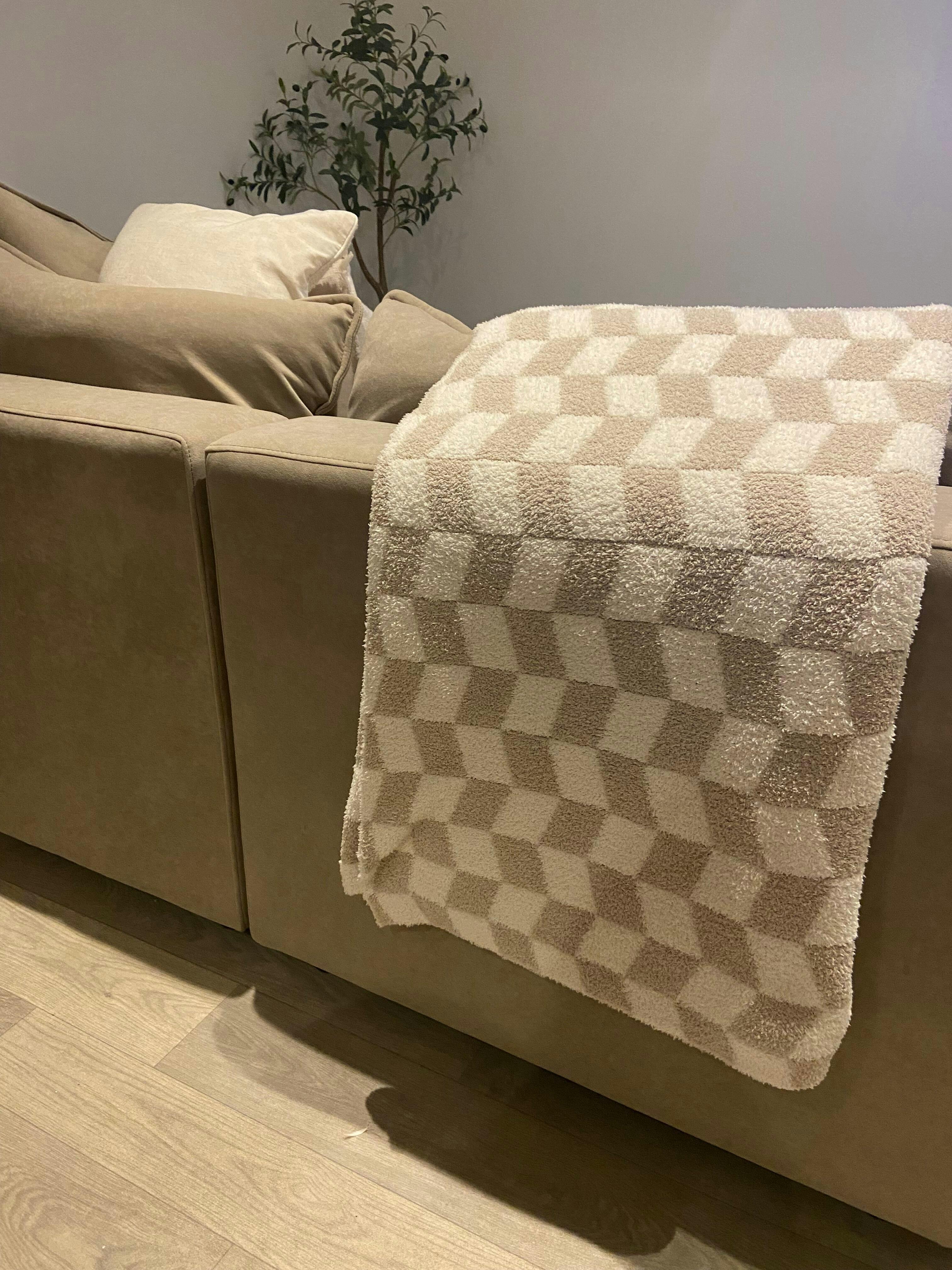 Wrap yourself in cosy style with our Fluffy Knit Checkerboard Throw.