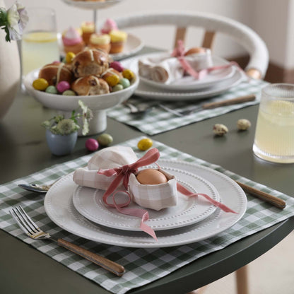 Perfect for casual lunches or formal dinners, they pair beautifully with other items in the Gabriella Gingham Collection for a truly cohesive and charming table setting, such as napkins, a table runner, and a tablecloth.