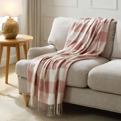 Gingham Sofa Throw - Cinder Rose