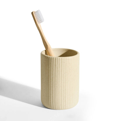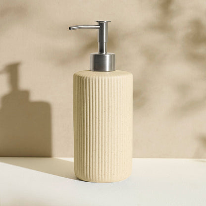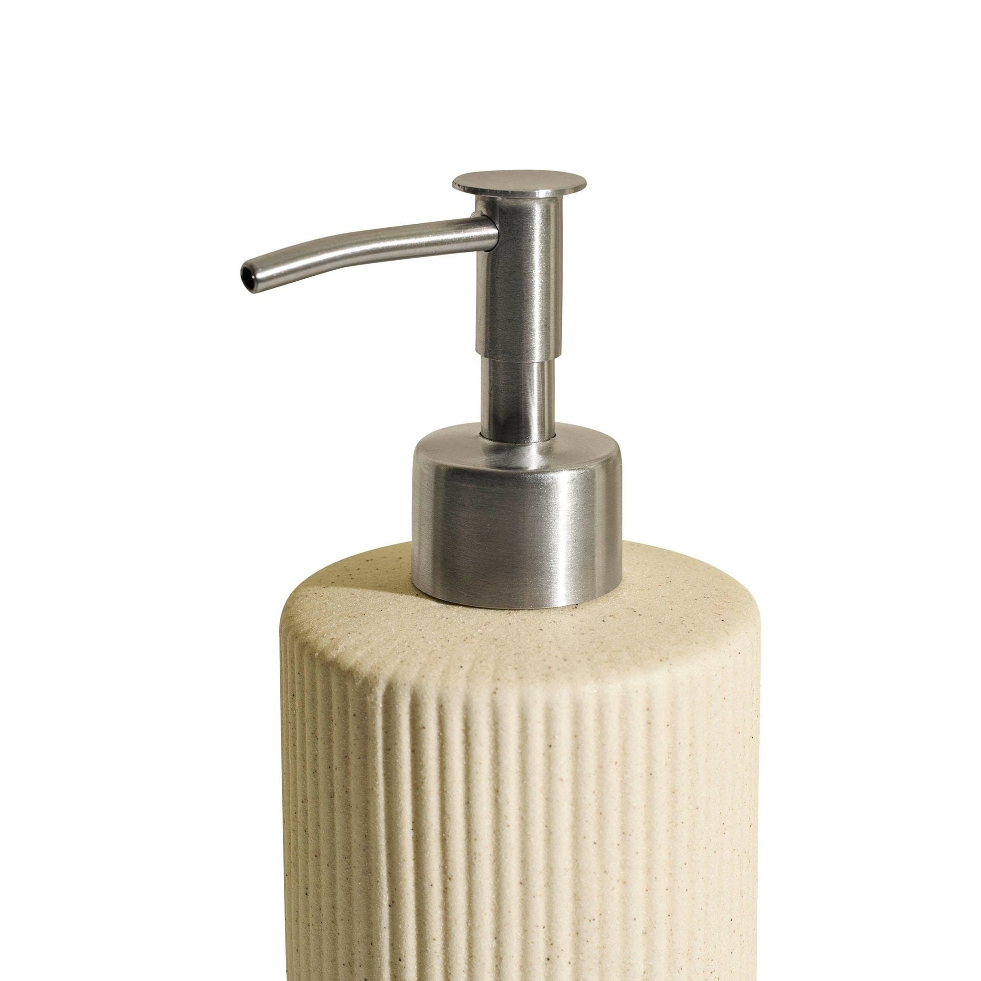 With softly ribbed stoneware and a tactile sand-effect finish, each piece adds subtle texture to your sink-side set-up. The dispenser features a sleek silver pump for a clean, modern touch, while the matching tumbler is ideal for toothbrushes or makeup brushes.