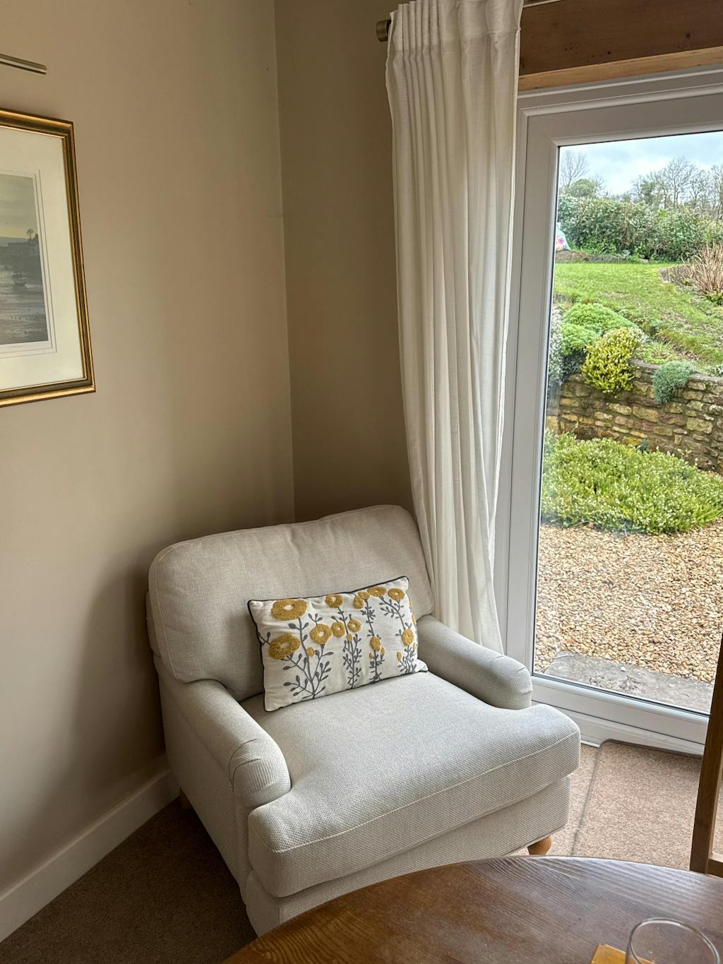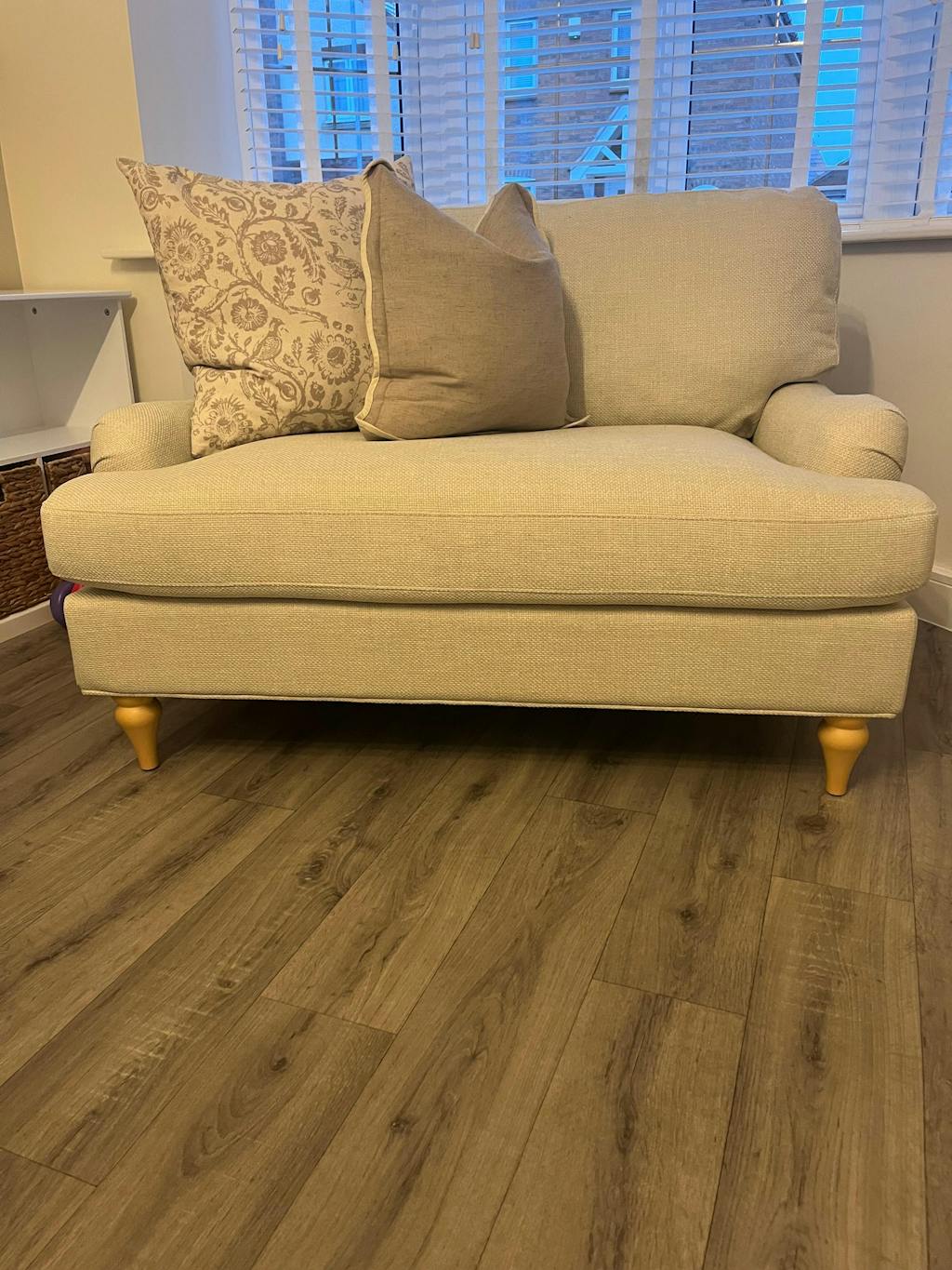 The beige Hampshire armchair will be delivered to the room of your choice. Simply attach the legs and fall in love with its cosy comfort and classic style.