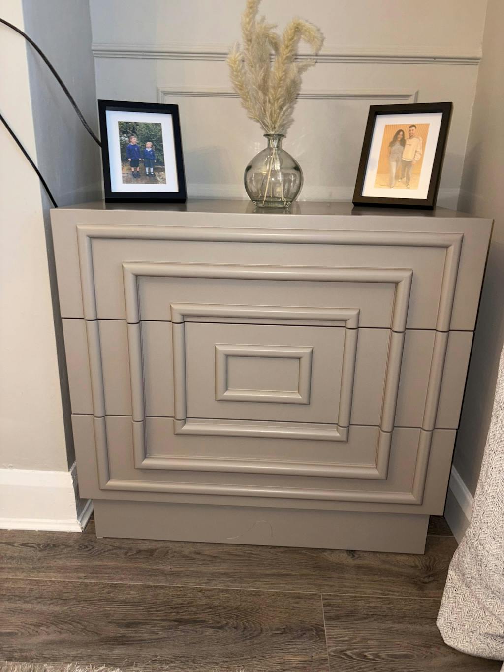 Available in three rich tones, soft cream, elegant taupe and moody midnight, this two-drawer beauty. The useful drawers give you ample storage to keep your space feeling calm and collected. Features dimensional panelling that cleverly conceals the drawer pull within the design.