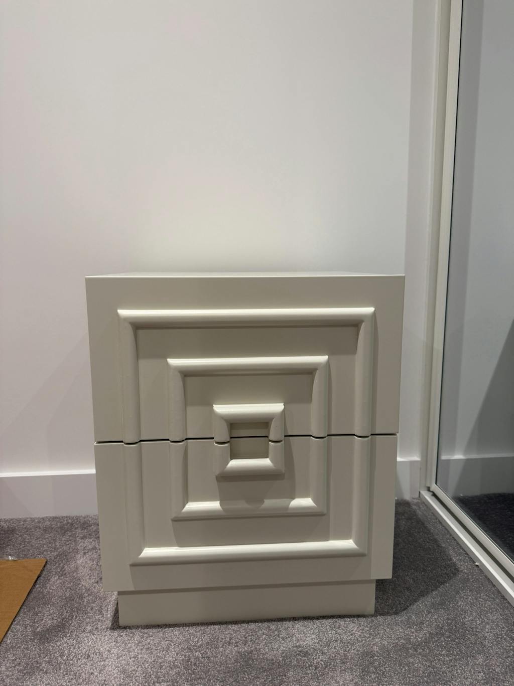 With its bold, geometric front and sculptural detailing, it’s more than a place to keep your night-time bits and bobs, it’s a talking point.