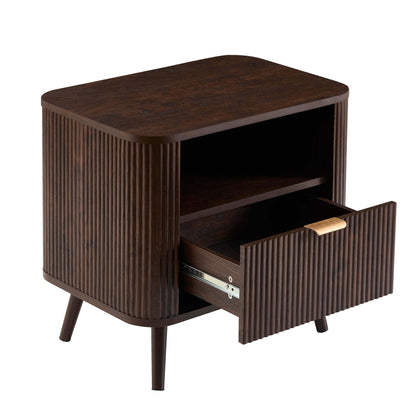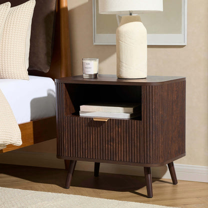 Available in a range of finishes, it suits a variety of styles and colour palettes. With a spacious open shelf for quick access and a drawer for discreet storage, the Hattie Nightstand is as functional as it is beautiful. Add a touch of modern sophistication to your bedtime routine.
