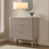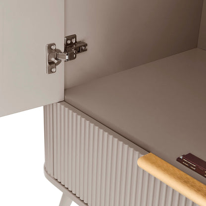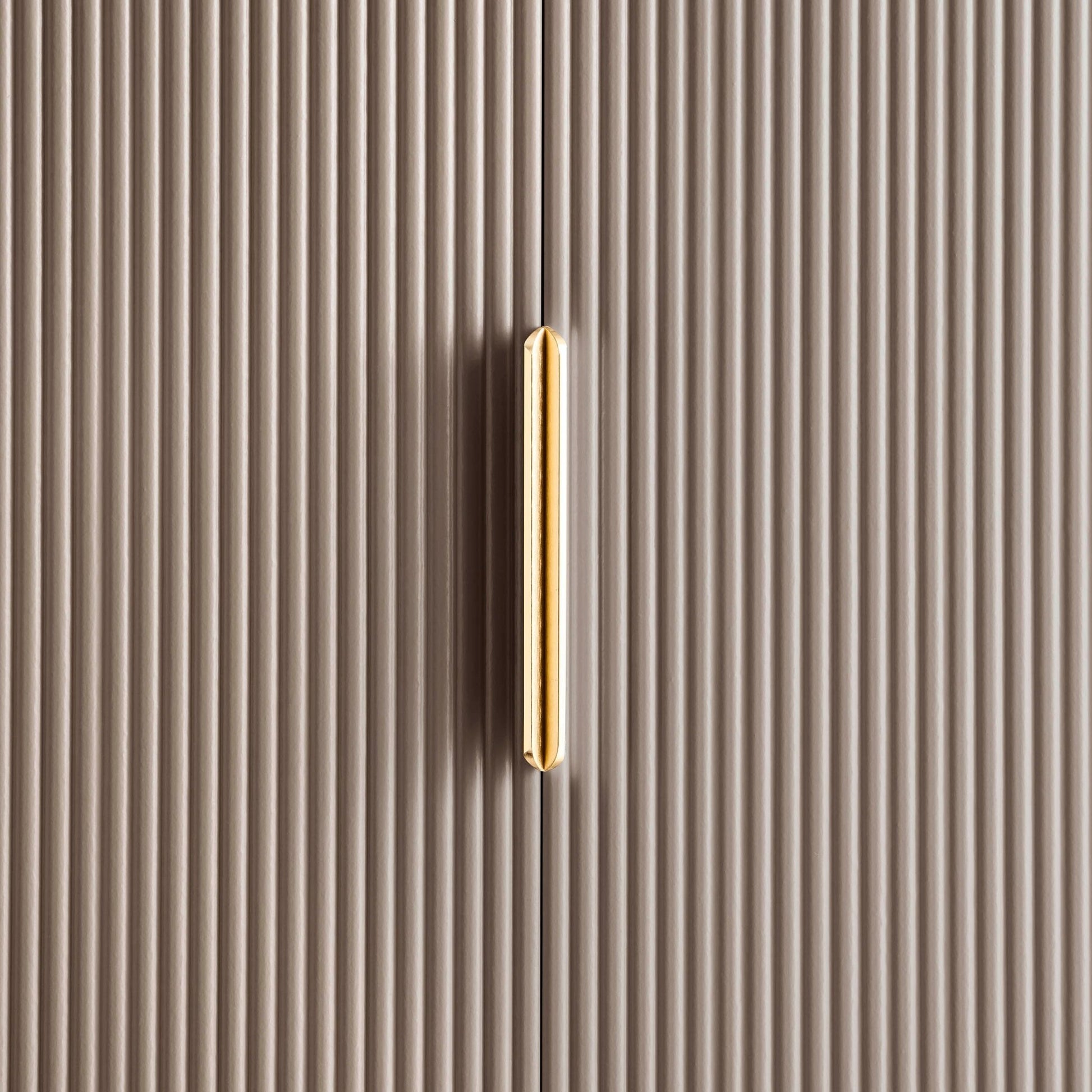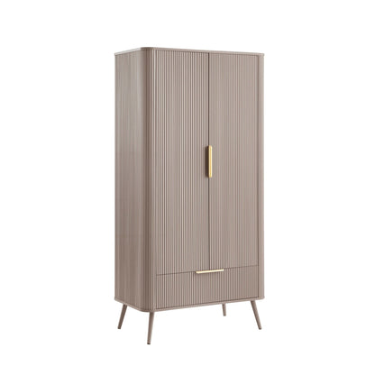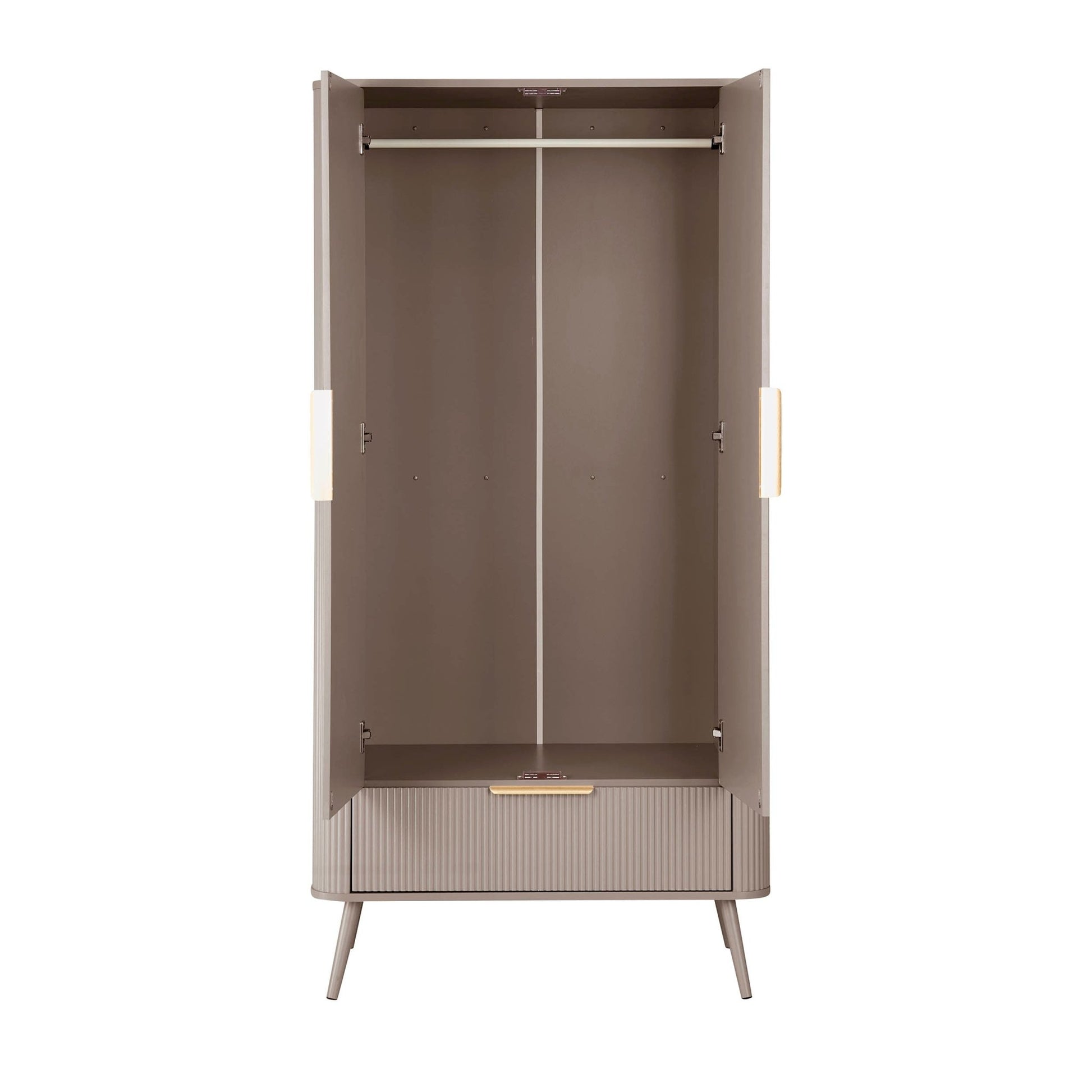 Available in different colour finishes, this wardrobe features grooved detailing and slim legs, adding a contemporary touch to your space.