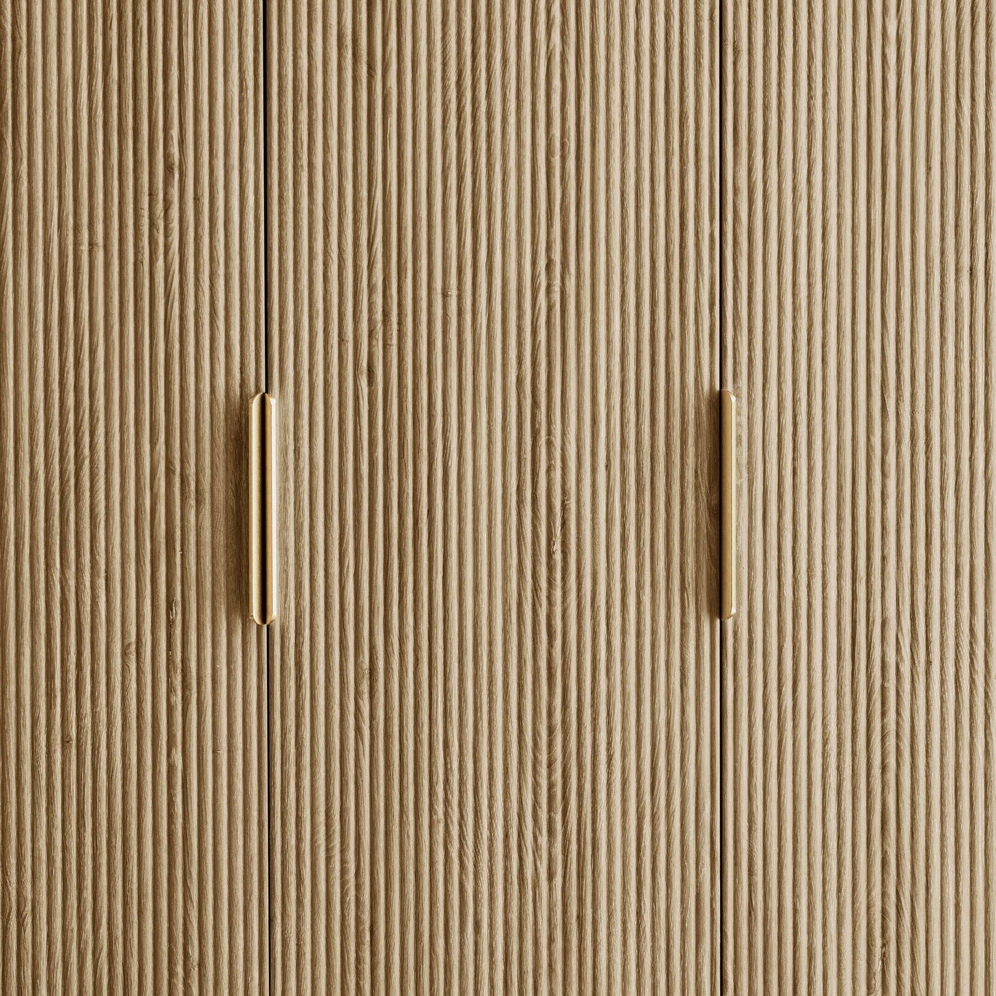 With its gently curved edges, warm brass handles and that beautifully grooved finish, it adds a considered, high-end feel to your bedroom without overpowering the room.