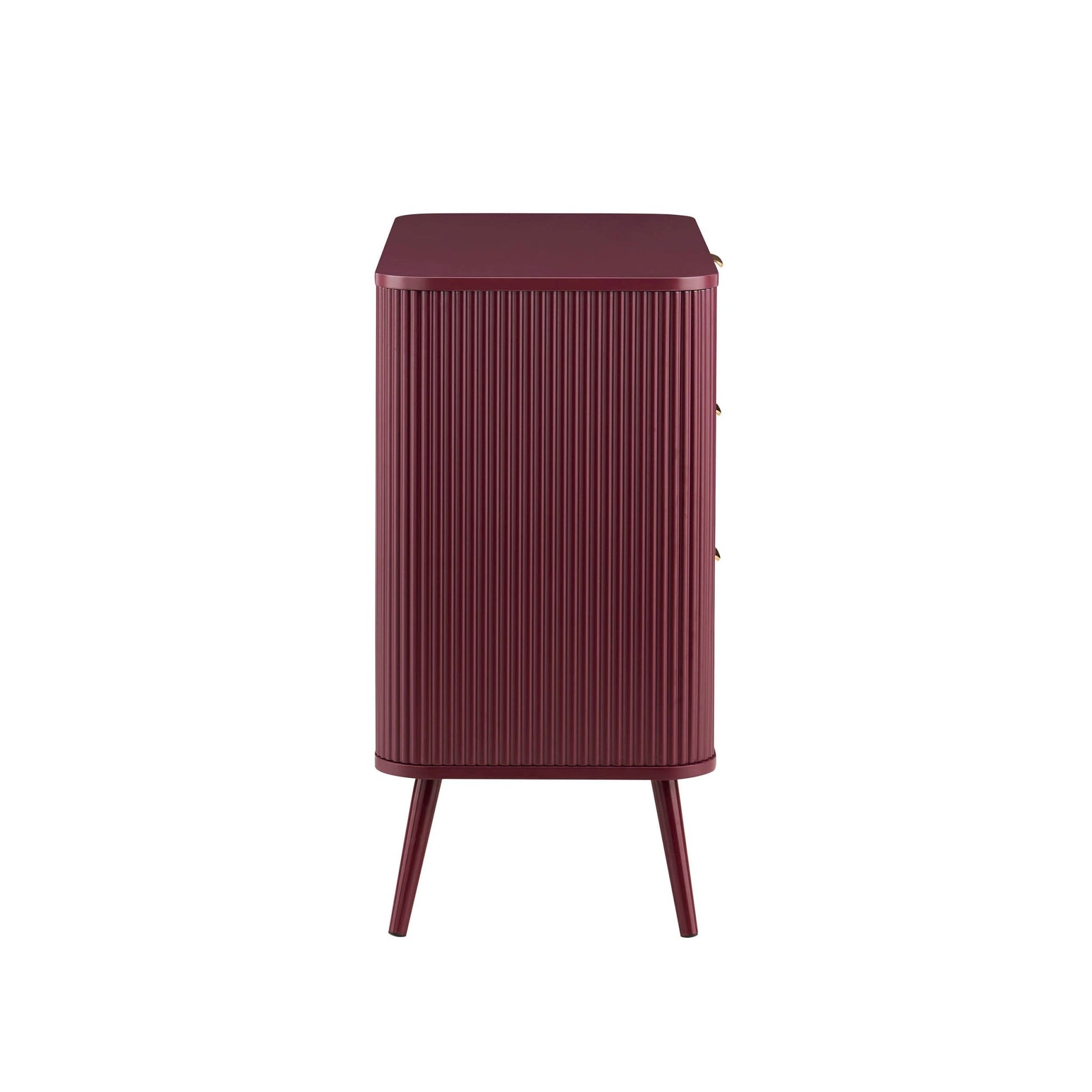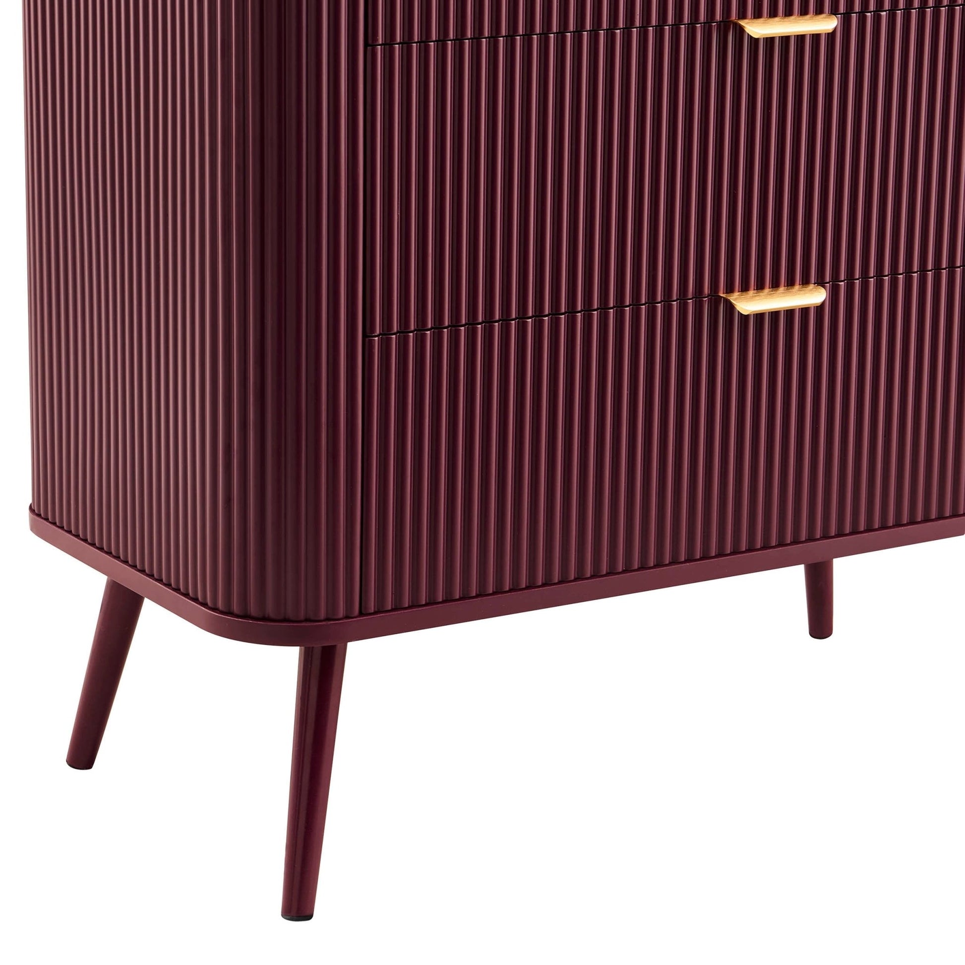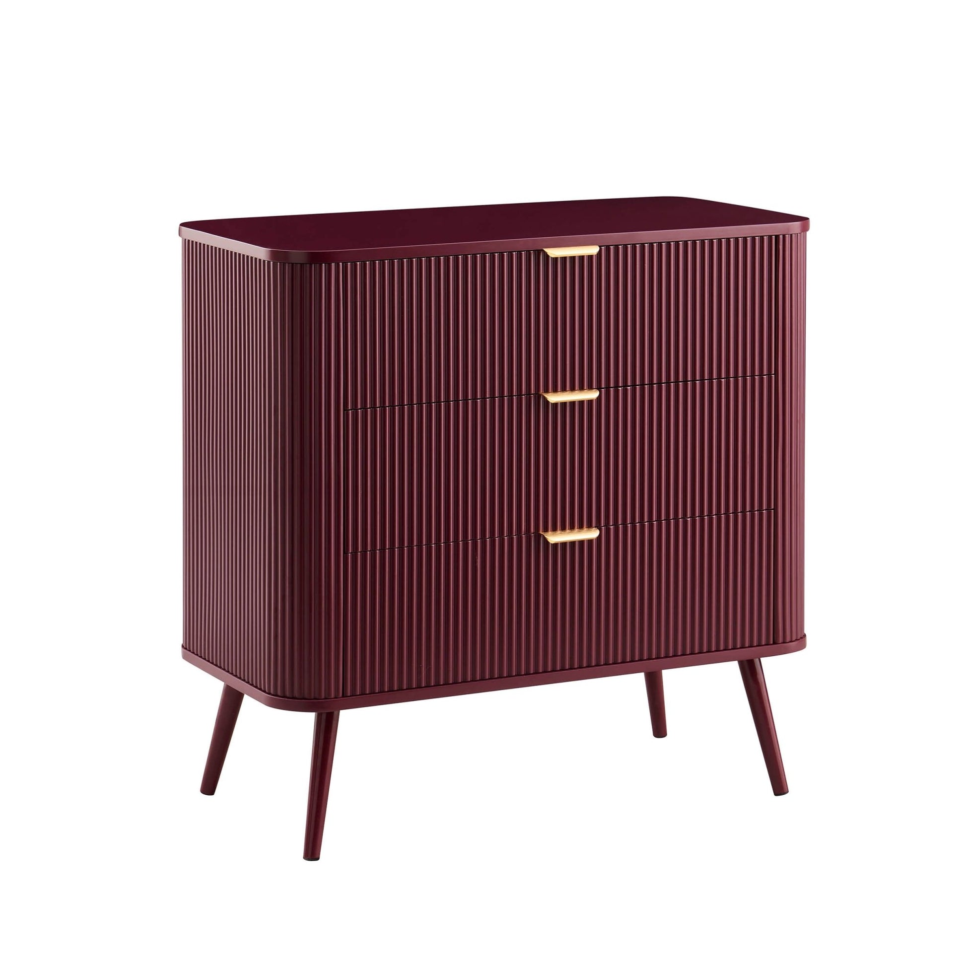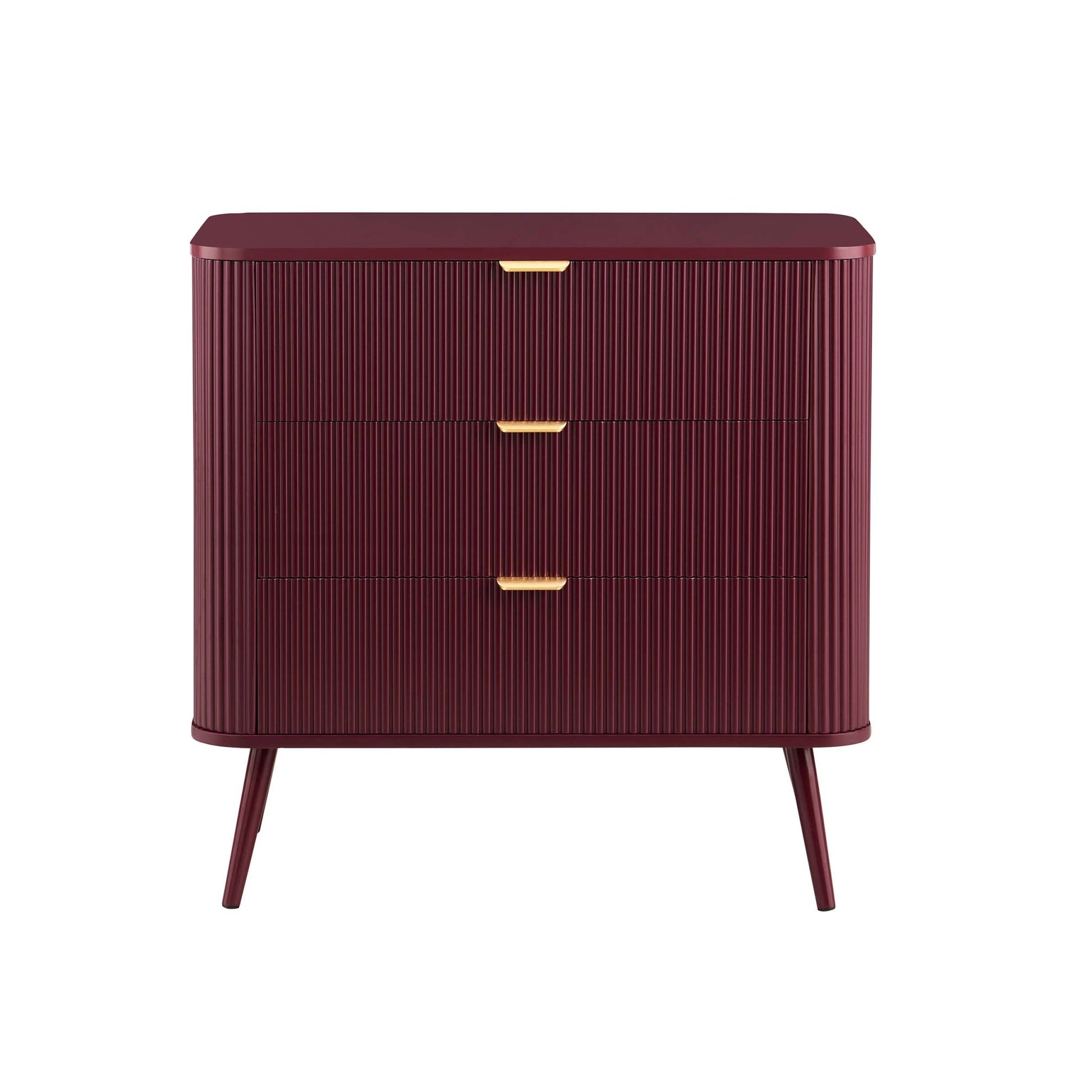 This burgundy chest of drawers is proof that smaller pieces can still make a bold statement. With its rich wine-red tone, fluted front and sleek gold handles, it brings just the right amount of drama to bedrooms, hallways, or even home offices. The compact size makes it ideal for tighter spaces, without sacrificing storage or style.
