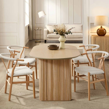 Add a little modern style and flair to your dining space with the Hattie 6 seater dining table in natural.