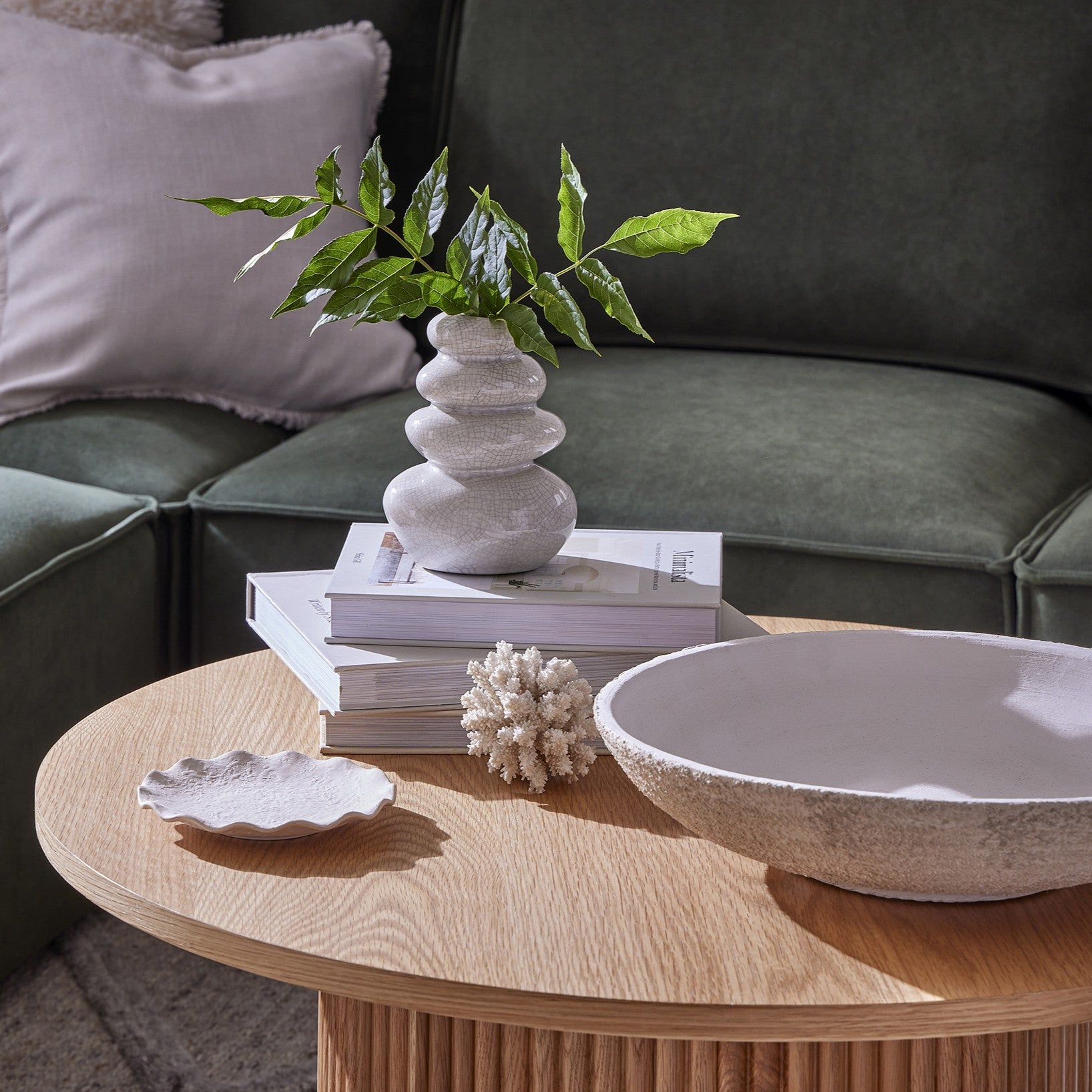 The Hattie Coffee Table is the perfect place for coffee with friends, or as somewhere to keep your favourite books and magazines to hand. Seriously on trend whilst never being out of style, the Hattie Coffee Table is beautifully crafted, with lasting durability in mind. Made with a smooth rounded top and a solid natural light wood effect veneer, it features an eye-catching panelled design with slim, straight lines along a cylindrical base.