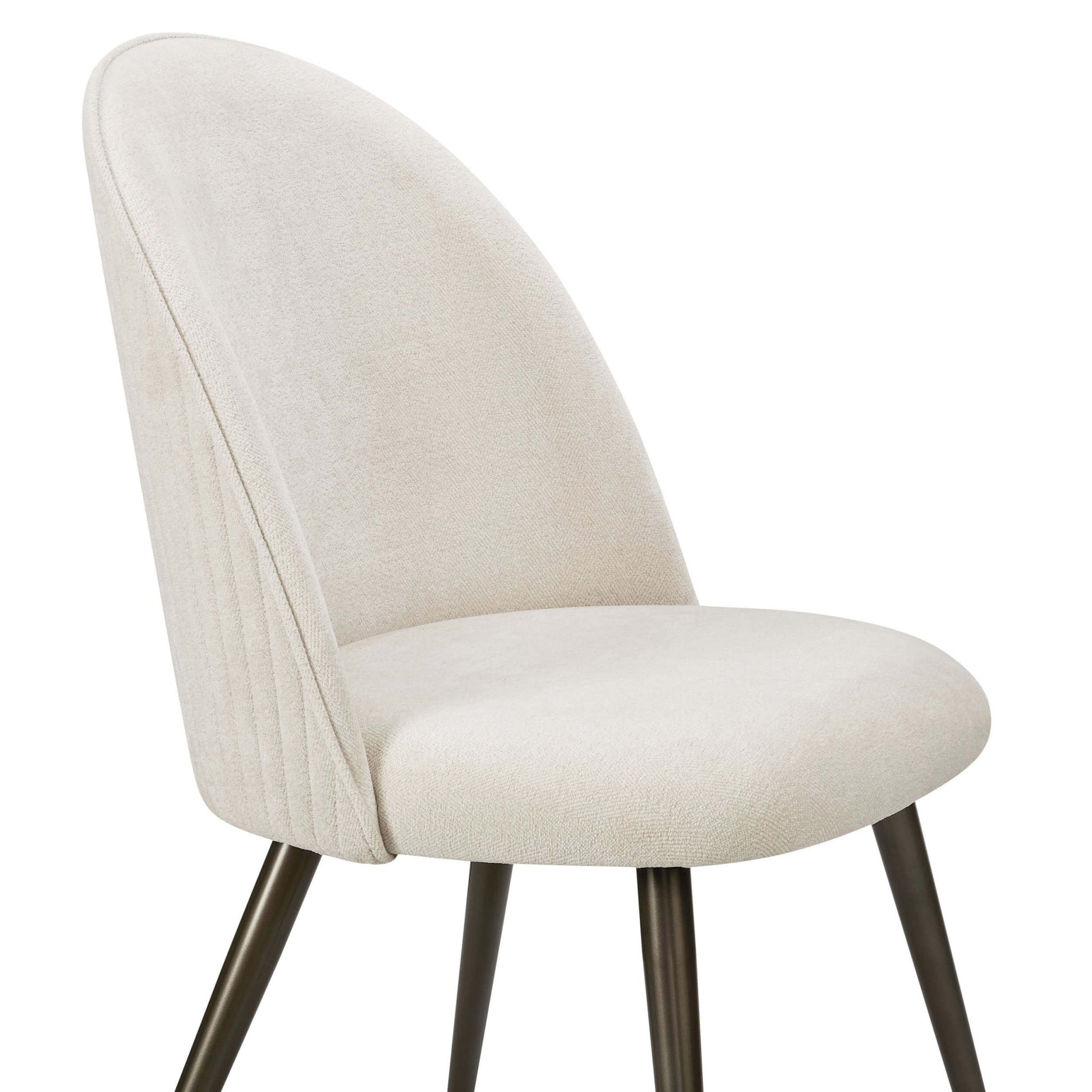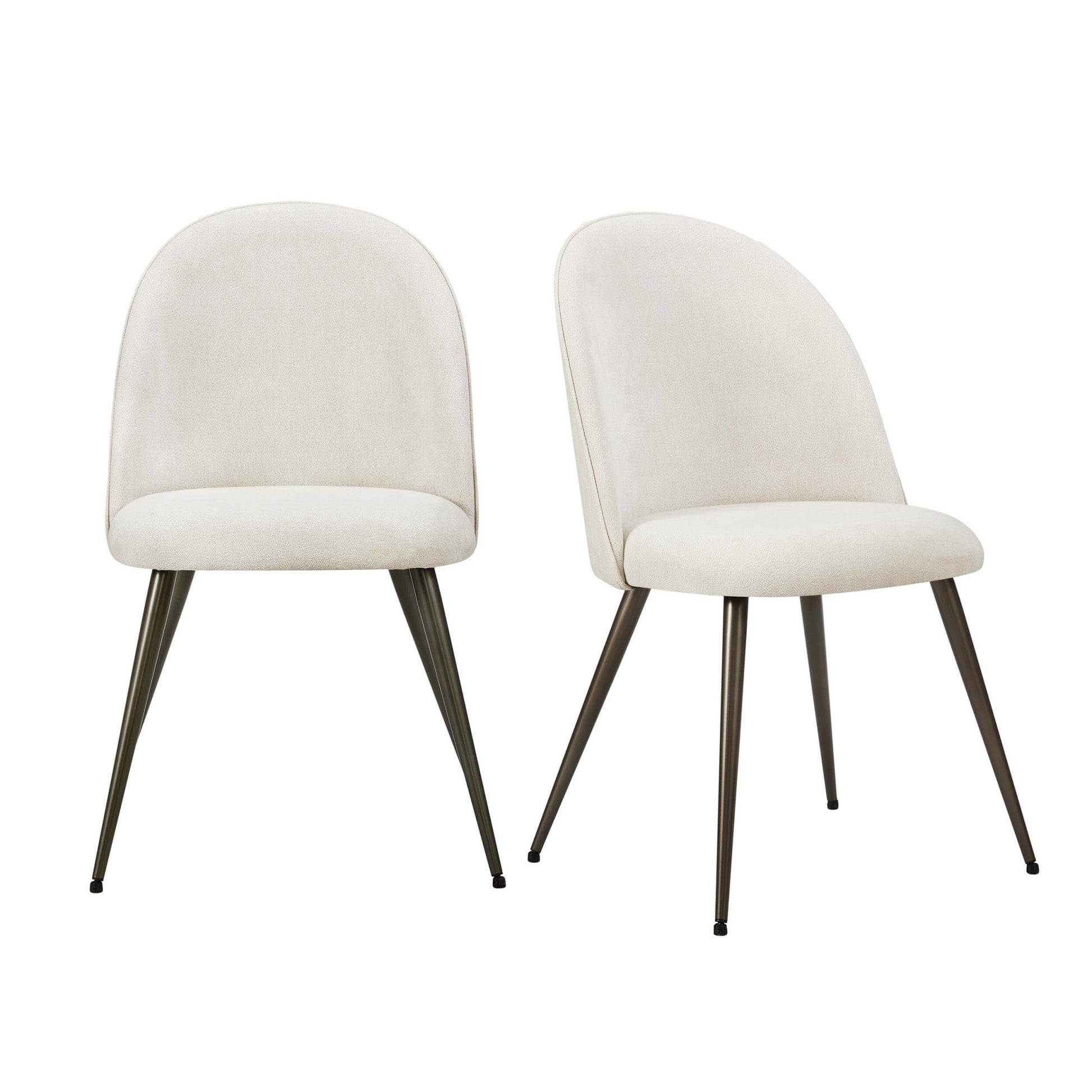 Designed for comfort as much as style, each chair features a gently cushioned seat and sleek legs for a modern finish. Available in a range of colours and textures to suit every interior - from rich velvets to smooth faux leathers and soft-touch chenille. Our Ivory Chenille and Bright Orange Hattie chairs have classic bronze legs.