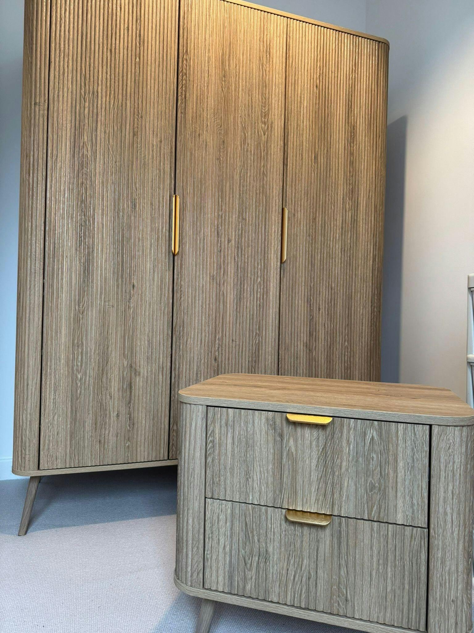 Designed with a grooved texture and sleek lines, the Hattie TV Unit is the perfect blend of modern design and practical storage. Featuring two spacious cupboards, a central drawer, and an open shelf, it offers ample space to organise your electronics, remotes, and cables. The sturdy top surface is ideal for your television and displaying decorative items.