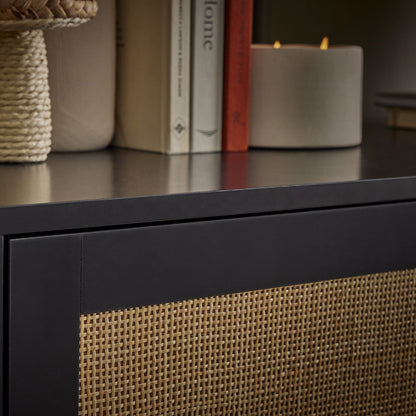 With plenty of storage space for all your home essentials, the Isla 2 door sideboard will be a stunning addition to your living space. With a relaxed and stylish rattan design and a smooth painted wood finish in black, it perfectly blends with any classic or contemporary home interior.