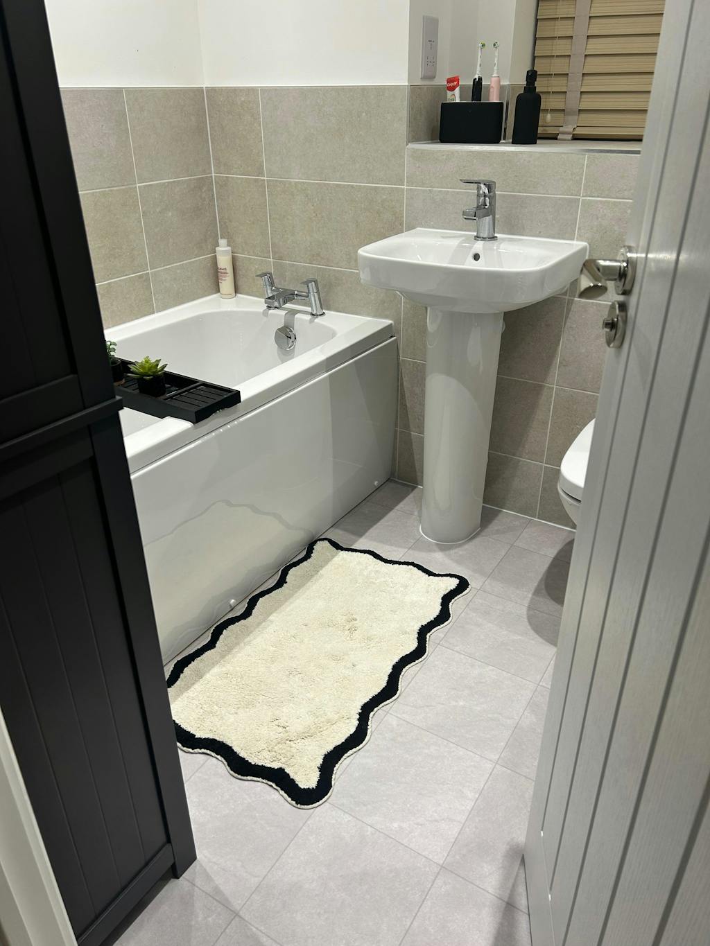 Crafted from 100% tufted cotton, this bath mat is super soft and absorbent, ensuring a cosy feel underfoot. The latex backing keeps it securely in place, blending comfort with practicality.