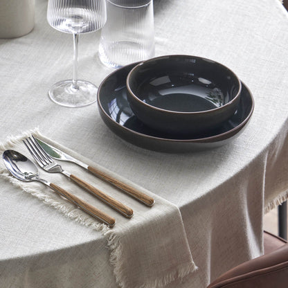 Perfectly tailored for round tables, this linen-blend tablecloth combines everyday practicality with effortless style.