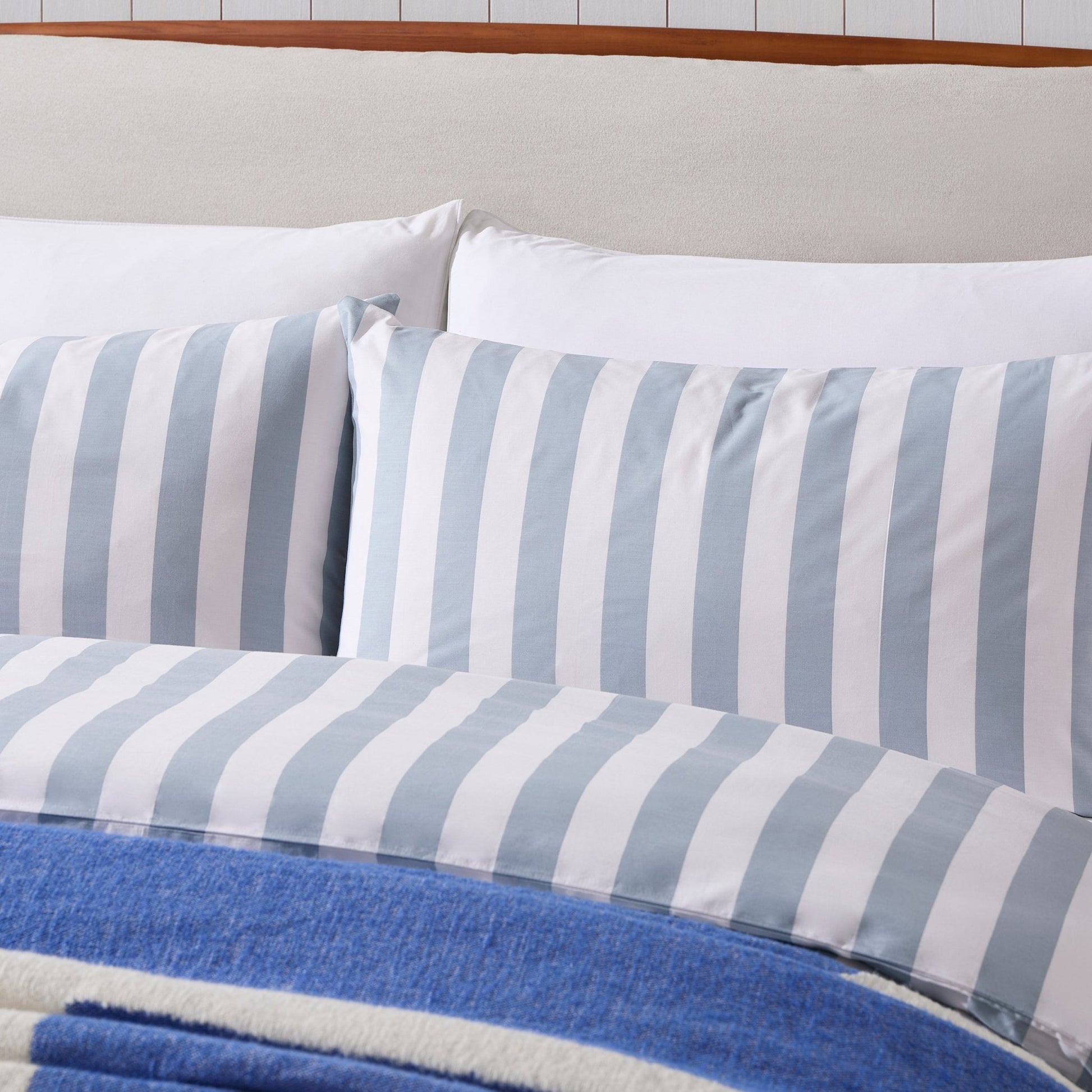 The wide stripe design adds a subtle statement, striking the perfect balance between laid-back and refined. Available in Natural, Berry, French Blue and Slate Blue with sizes ranging from Single to Super King. The Livia collection is perfect for creating a serene, stylish retreat in any bedroom.