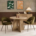Made with a premium, soft to the touch fabric, this set of 2 dining chairs is set to beautifully enhance your living space, whether you’re wining, dining or relaxing. Featuring a stylish curved half-moon design for a soft and elegant feel, it also has bronze legs for an added touch of flair.