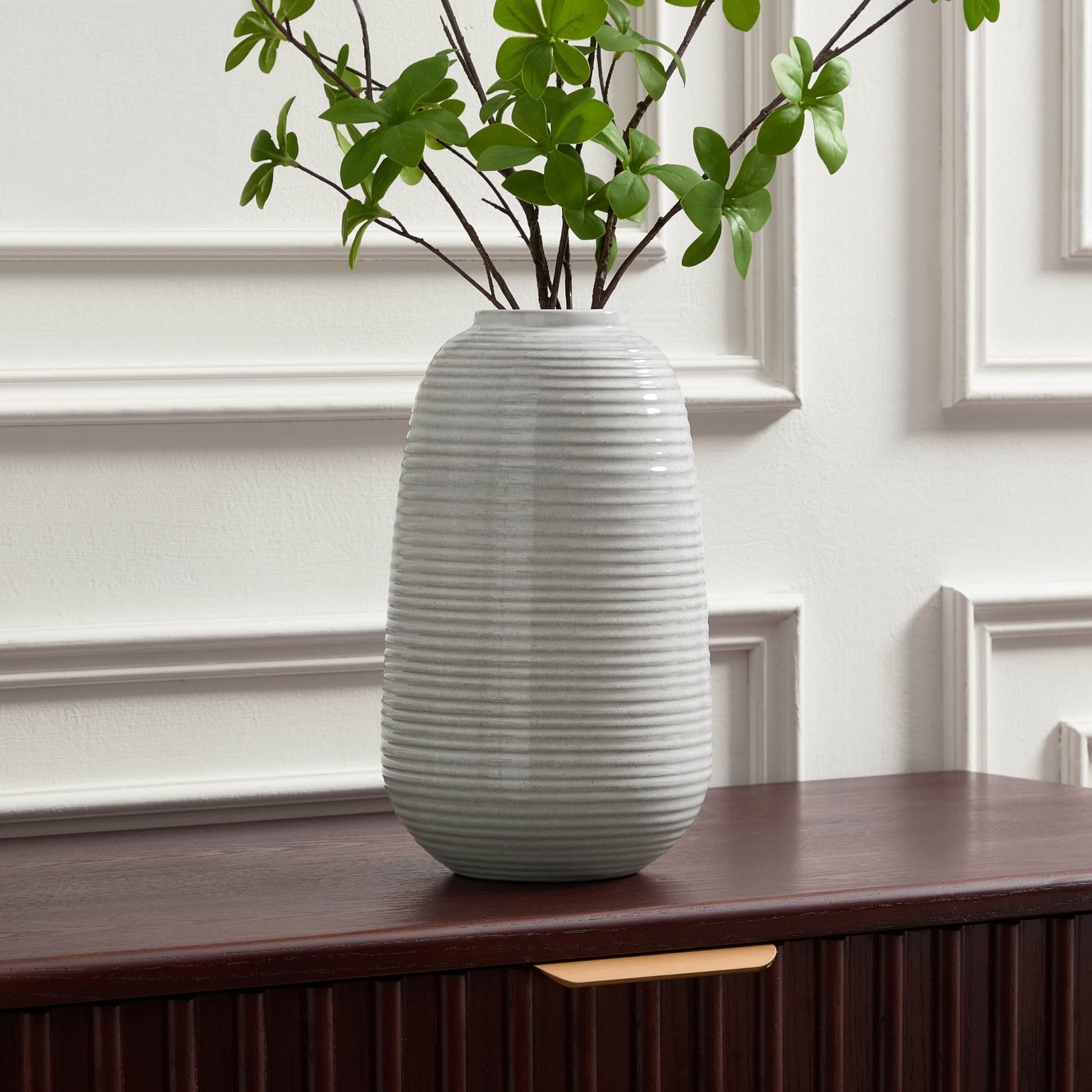 The Lydia Rib Glaze Vases bring timeless elegance with their sleek, ribbed design and glossy finish.