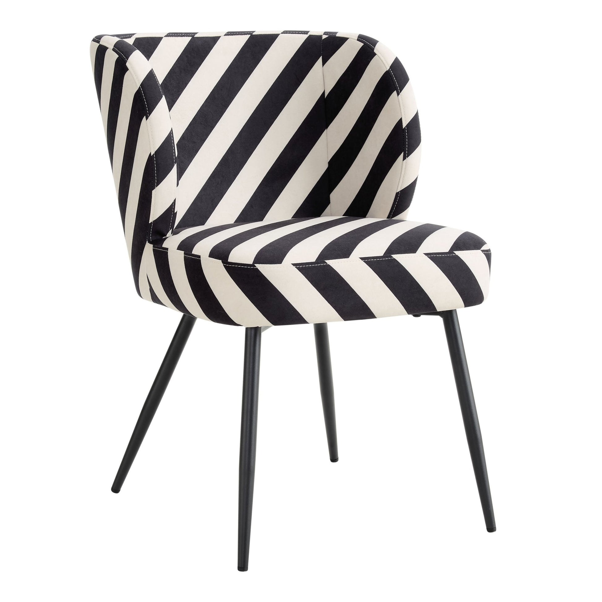 This dining chair is made from a premium fabric that’s beautifully soft and reliably durable. With black legs for a contemporary and elegant touch, it also features a curved and angular wing shape design for smooth, modern lines. Chic and versatile, it’s a perfect fit for your kitchen and dining space. Why not pair with one of our stunning dining tables for the ultimate in stylish dining?