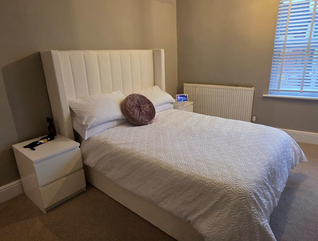 For a luxurious night’s sleep, the Madison Ottoman Storage Bed in off-white bouclé is the perfect choice.