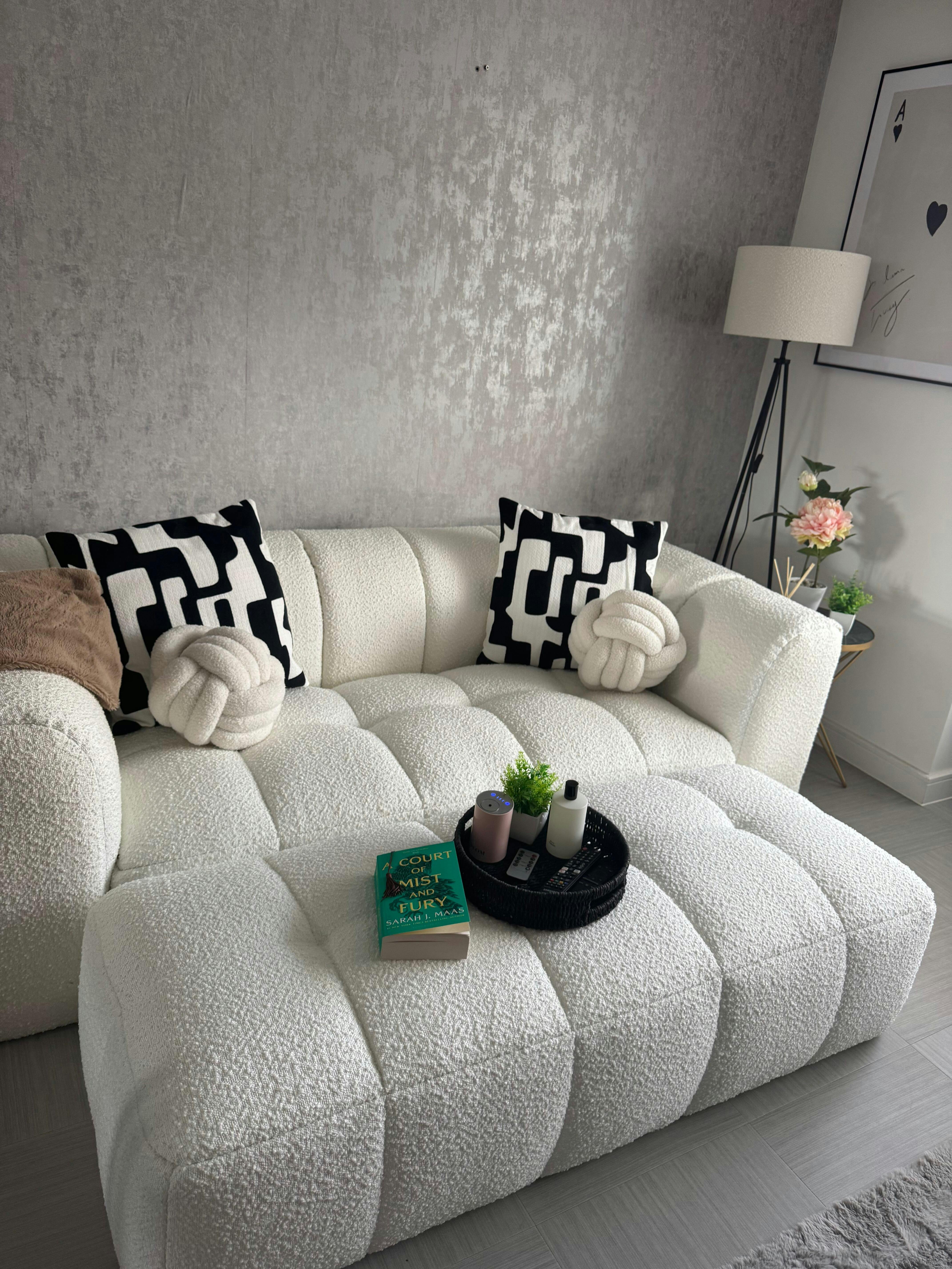The perfect blend of chic elegance and cosy sophistication, the Manhattan Loveseat is the ideal addition to your home. Lovingly made with premium velvet fabric in a soft stone shade, it features sleek curved arms and a lined plush cushion design—the ideal place for relaxing with a book or sharing a cosy moment for two. With a pocket-sprung seat, this loveseat ensures comfort that lasts, while its bubble design creates a bold statement in any room.