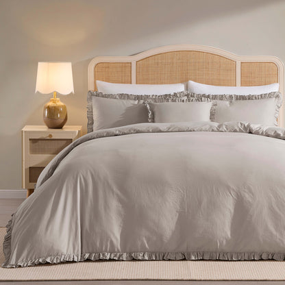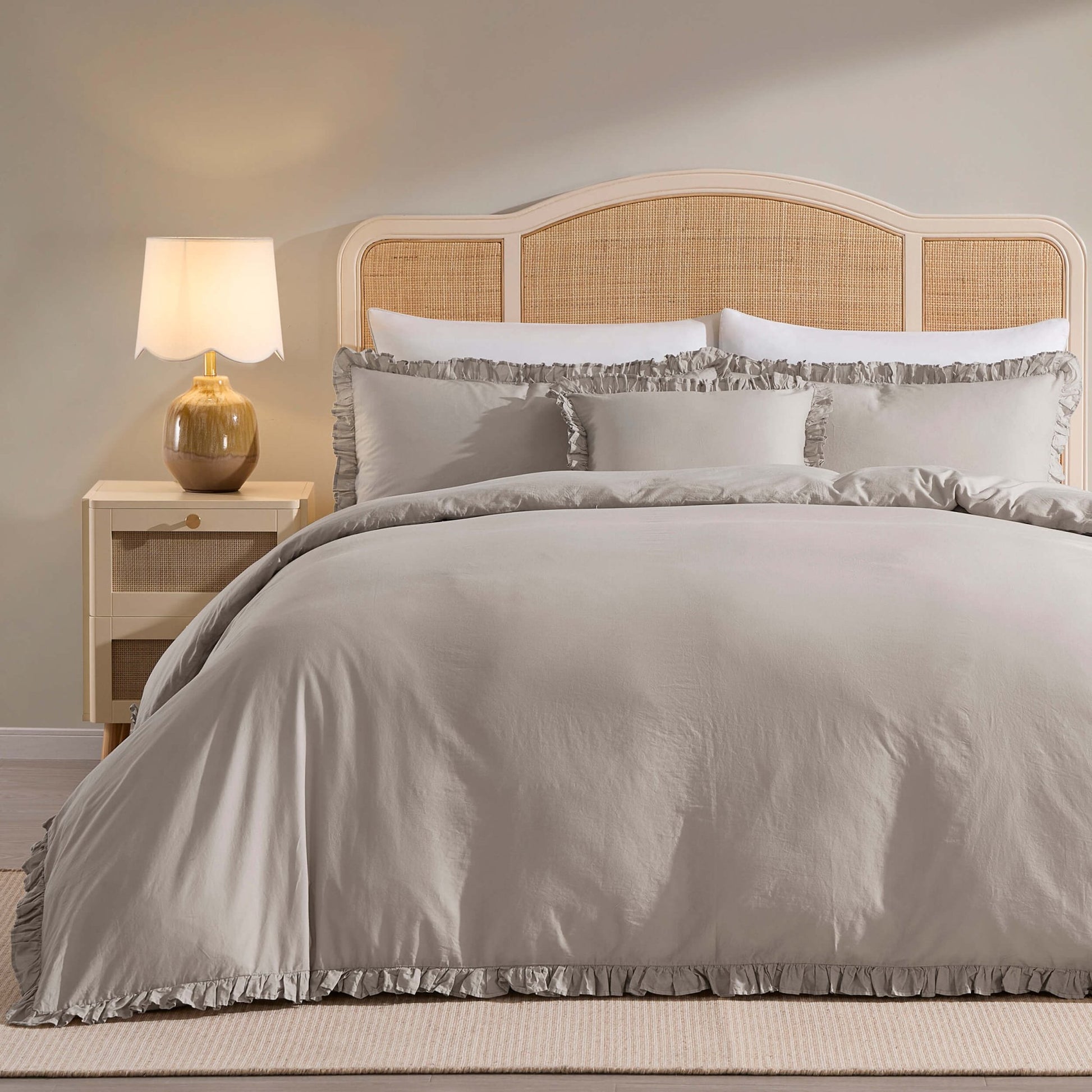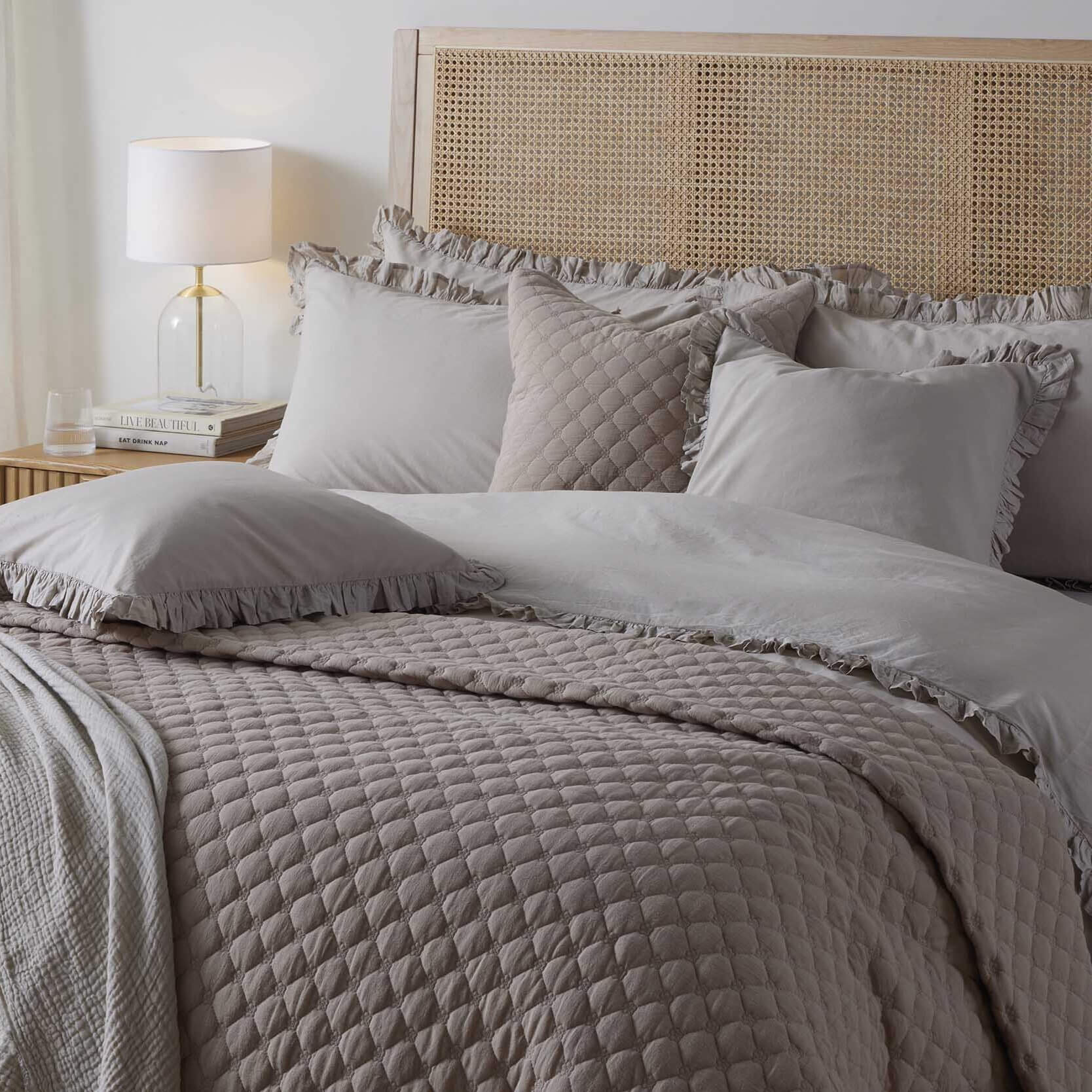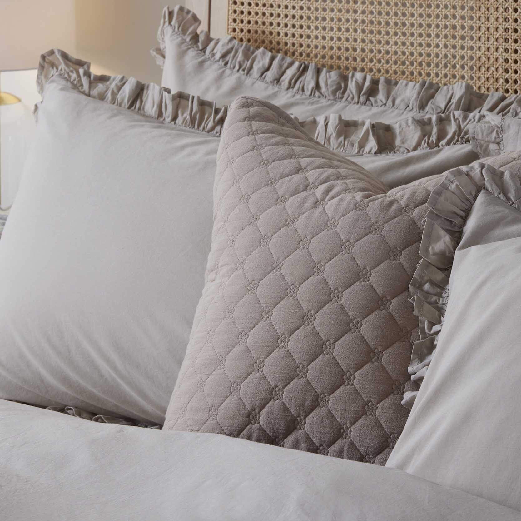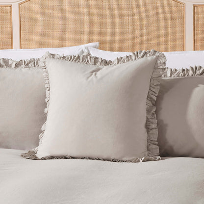 The Marion 100% premium washed cotton pillowcase promise nothing less than a luxurious night’s sleep. With a 200 thread count in a classic and stylish off-white sand shade, they feature a relaxed and playful ruffle-edge trim, bringing a touch of charm and a hint of wabi-sabi style to your bedroom interior.