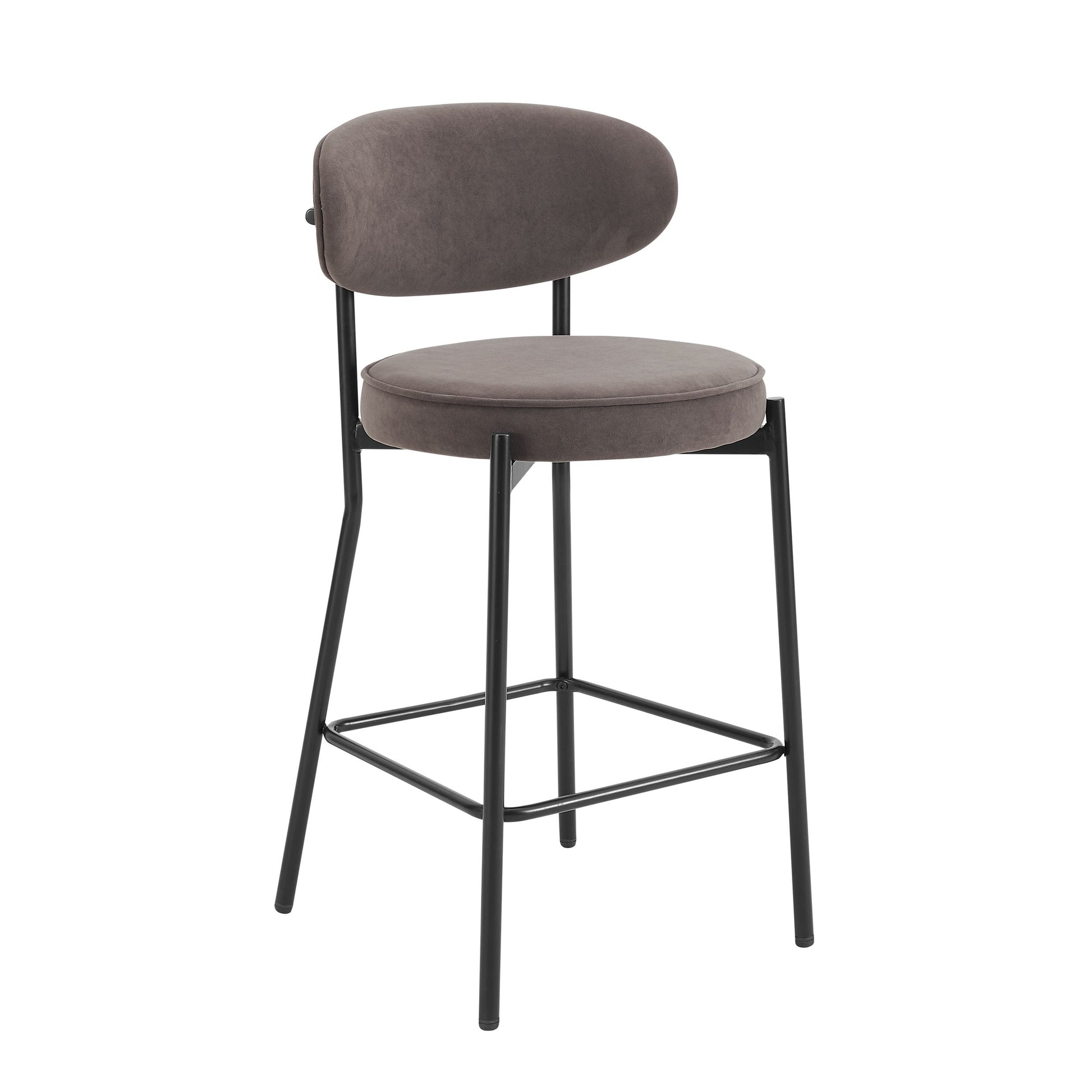 Chic, modern and elegant, our set of 2 Mia barstools are the epitome of simple yet stunning design. Made with a luxuriously soft premium matte velvet fabric in a beautiful shade of taupe, they have a rounded seat and backrest for soft, subtle lines, and a black metal frame for a contemporary look and feel.