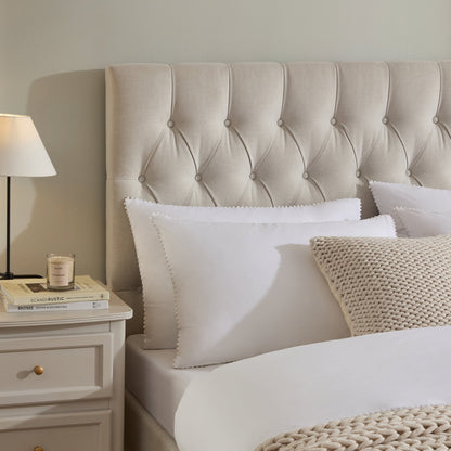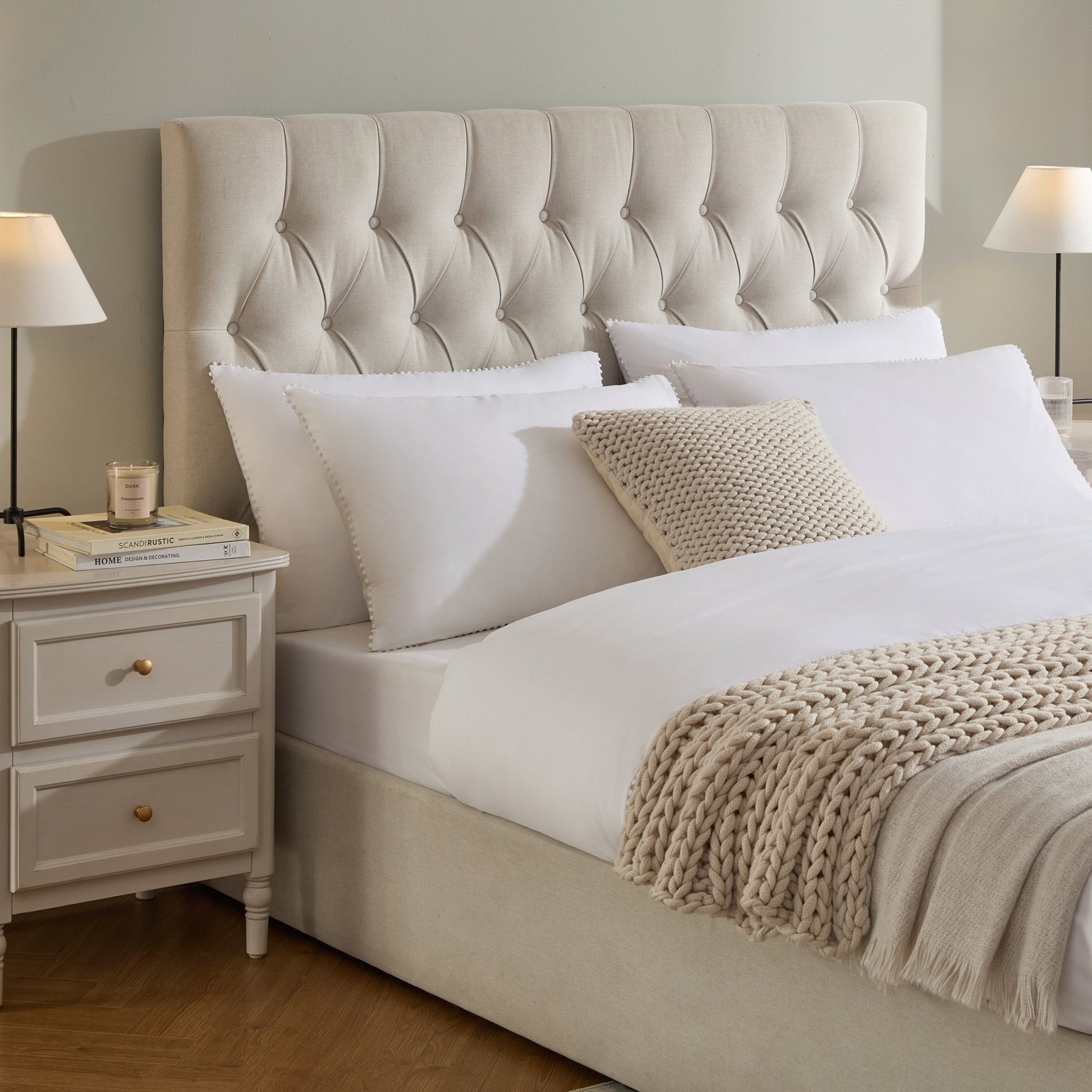 Welcome classic style to the bedroom with our elegant upholstered Middleton Linen Look ottoman storage bed in natural. Featuring a stunning hand buttoned design and luxurious, soft-touch linen look fabric, this cushioned headboard is one of our tallest for an eye-catching finish, feeling just as premium as it looks.