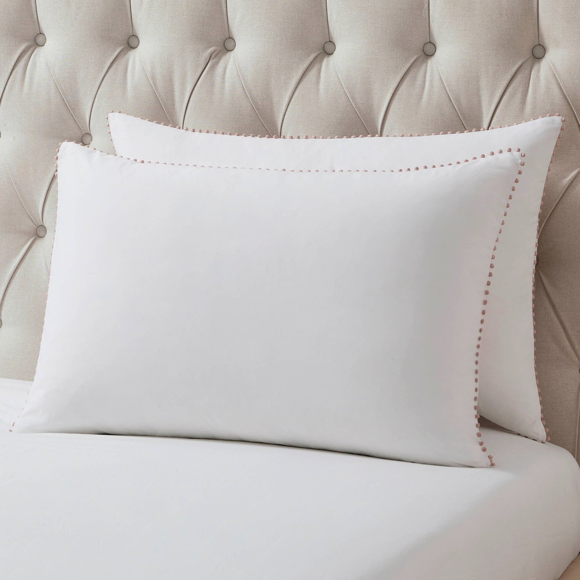 Crafted in a crisp white 200 thread count 100% cotton percale, this stylish collection features elegant pink pom pom detailing on the pillowcases and duvet cover. Designed to suit both classic bedrooms and more contemporary interior styles with a truly inviting finish.