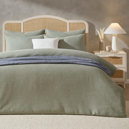 For a complete look, style with the matching Portofino Waffle Duvet Cover, crafted with a 200 thread count cotton percale reverse for hotel-quality comfort every night.