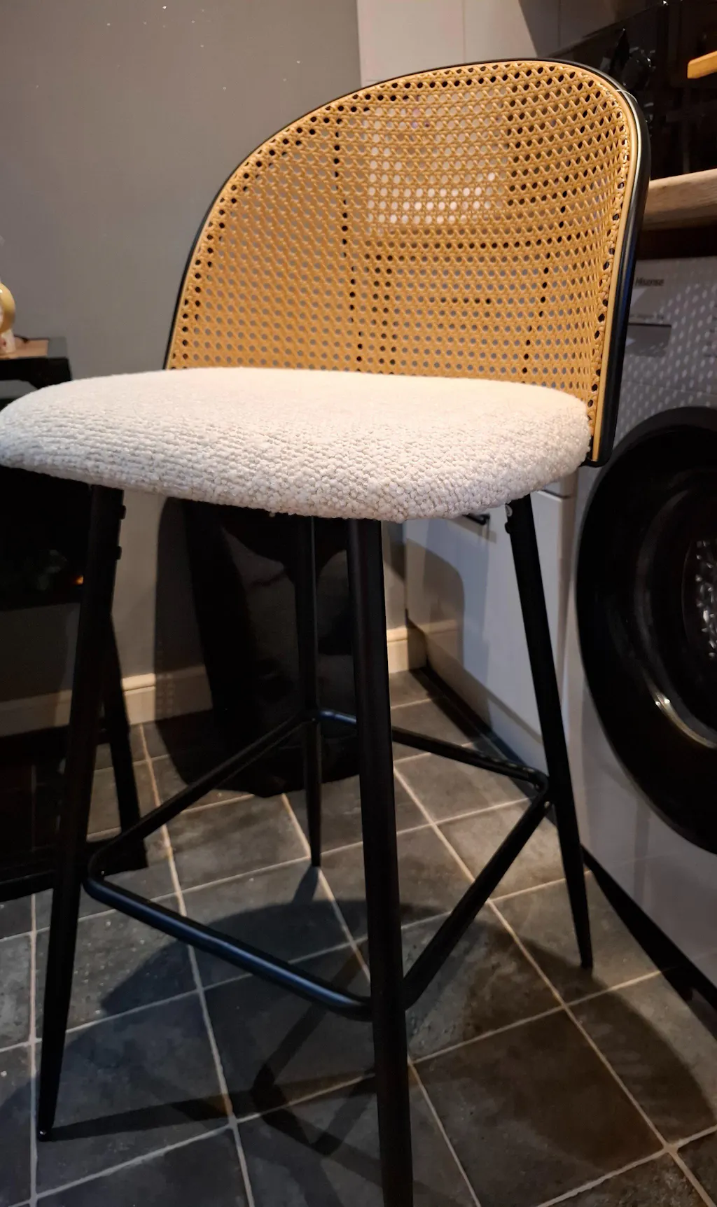 The chairs have a comfortable padded seat plus a stylish woven backrest which offers ample support while you’re sitting. Choose from a range of colours including ivory, blue, charcoal, pink, sage, and sand. Our ivory chairs come in a soft boucle fabric, while all our other colours are made from luxurious velvet. Depending on your home decor, you can also choose between black and natural legs within our Phoebe collection.