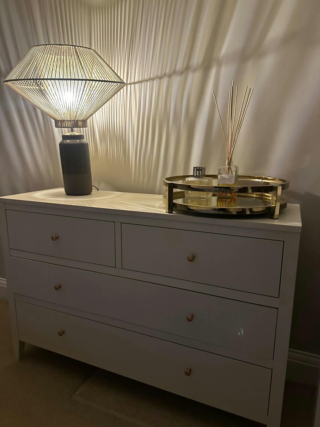 A stylish addition to any classic or contemporary bedroom interior, the Poppy large chest of drawers is chic, elegant and functional. With four drawers providing plenty of space to keep your bedroom tidy and clutter-free, it’s made with a premium durable material and is built to last. Available in three stunning colours: cream, sage and charcoal, customise this piece to suit your home by choosing between brushed gold effect or black handles.
